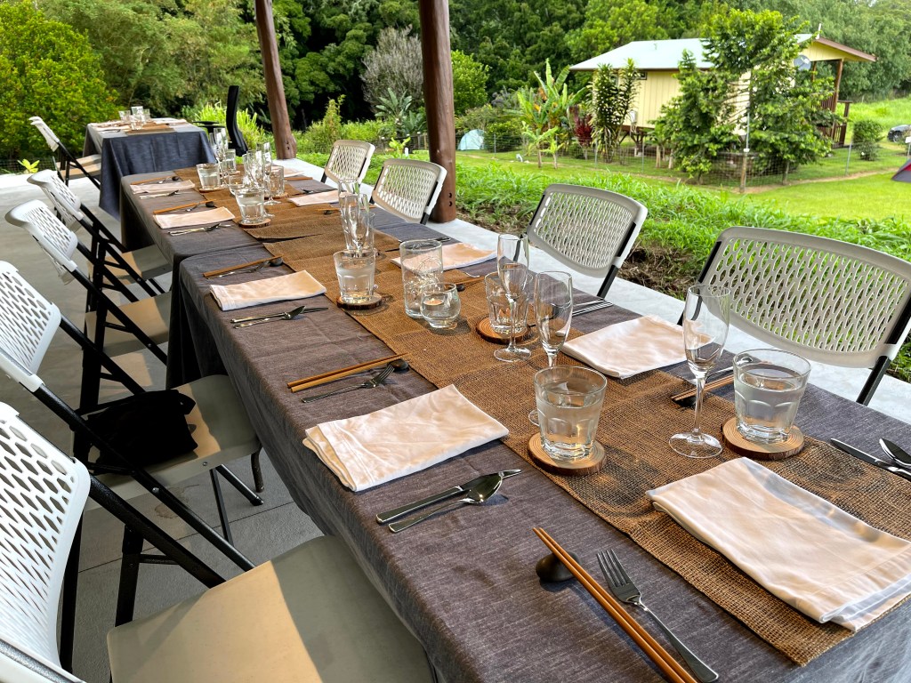 I recently had the opportunity to experience a private Na’au dinner during which Chef Brian Hirata cooks food to highlight and preserve Hawaii’s food culture while progressing our local cuisine. Our dinner was a eight-course meal at Whitehaven Farm in Pepeekeo. Finding the farm took me past the Pepeekeo Sugar Mill that was on the way to my childhood home in Pepeekeo Mill Camp. I moved out of Mill Camp when I was very young so I don’t think I’d be able to find my way to the Mill Camp to see how much it has changed today.