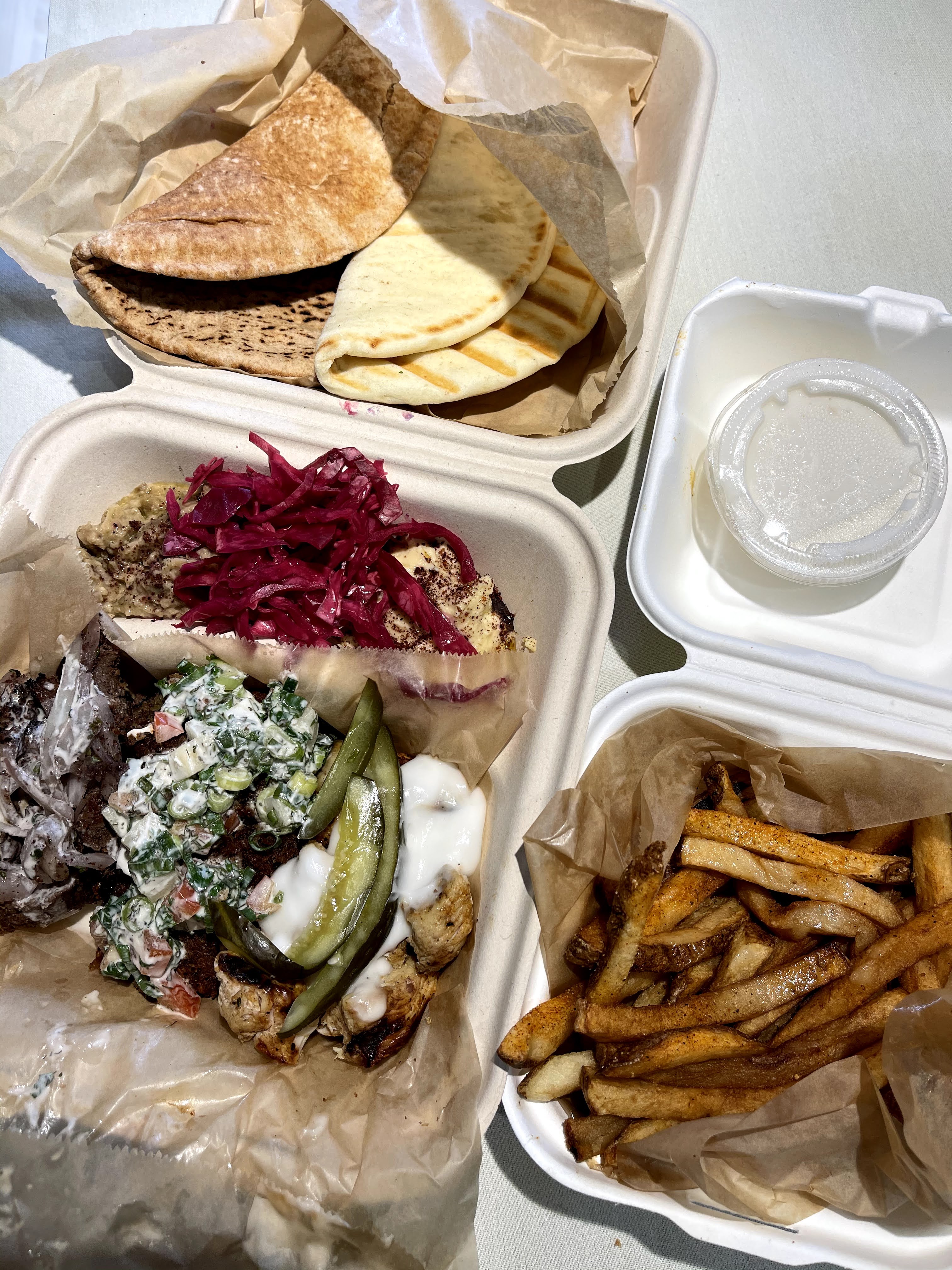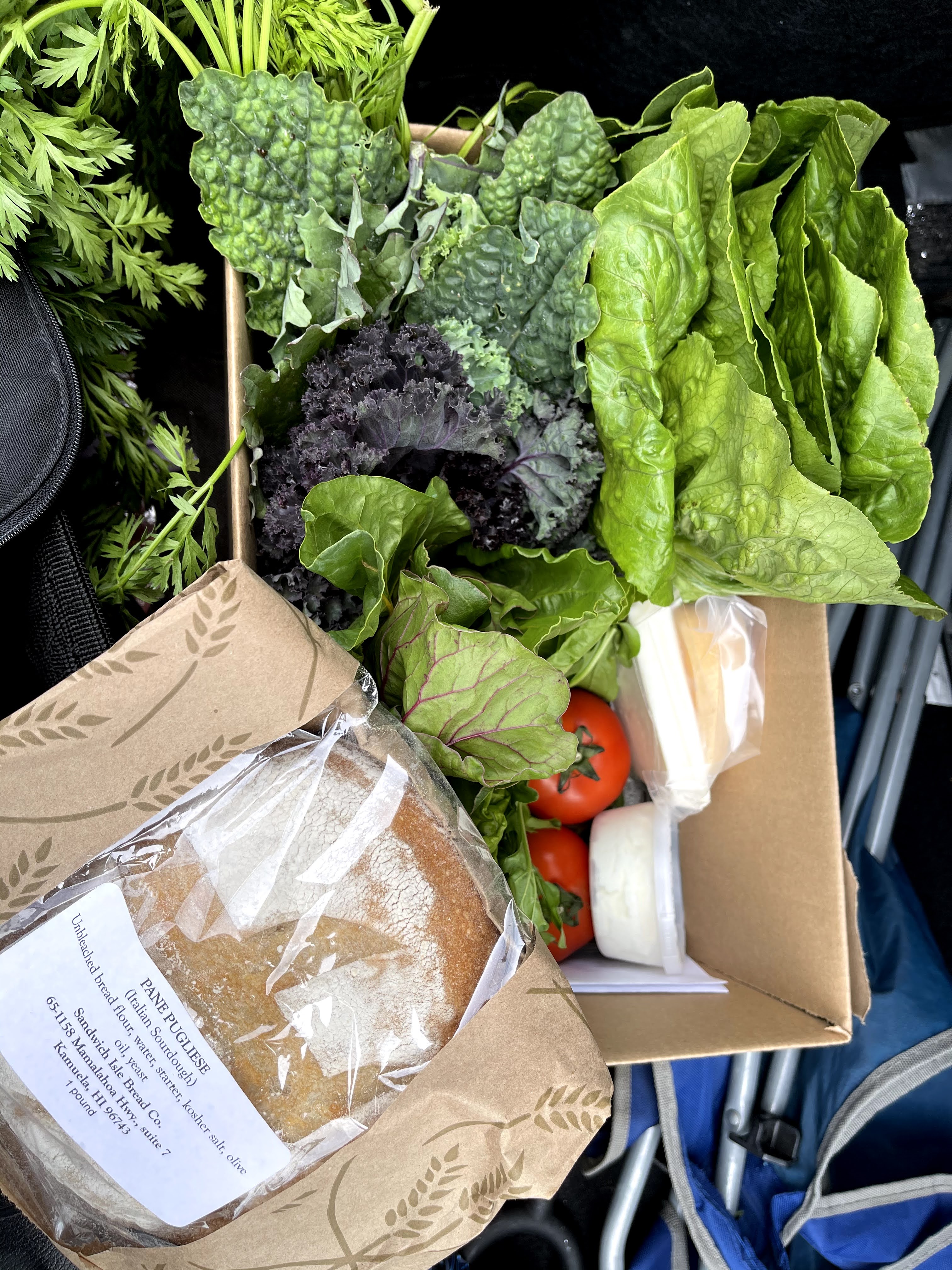 The new feature about this CSA purchase was that I could pick it up from the Tabaraka Lebanese food truck that is located just below the Hilo Public Library. I have always wanted to try the food from there and this was the perfect opportunity. I checked out the menu and decided to get the Deluxe Maza Plate that comes with falafel, shish-kababs, hummus, baba ganoush, and a couple of pitas. This was a perfect choice if you want to try a little of everything. Additionally, this is enough for two people! I would totally schedule my next Hawaii Eco order to be picked up at Tabaraka again! Living Hilo Style.