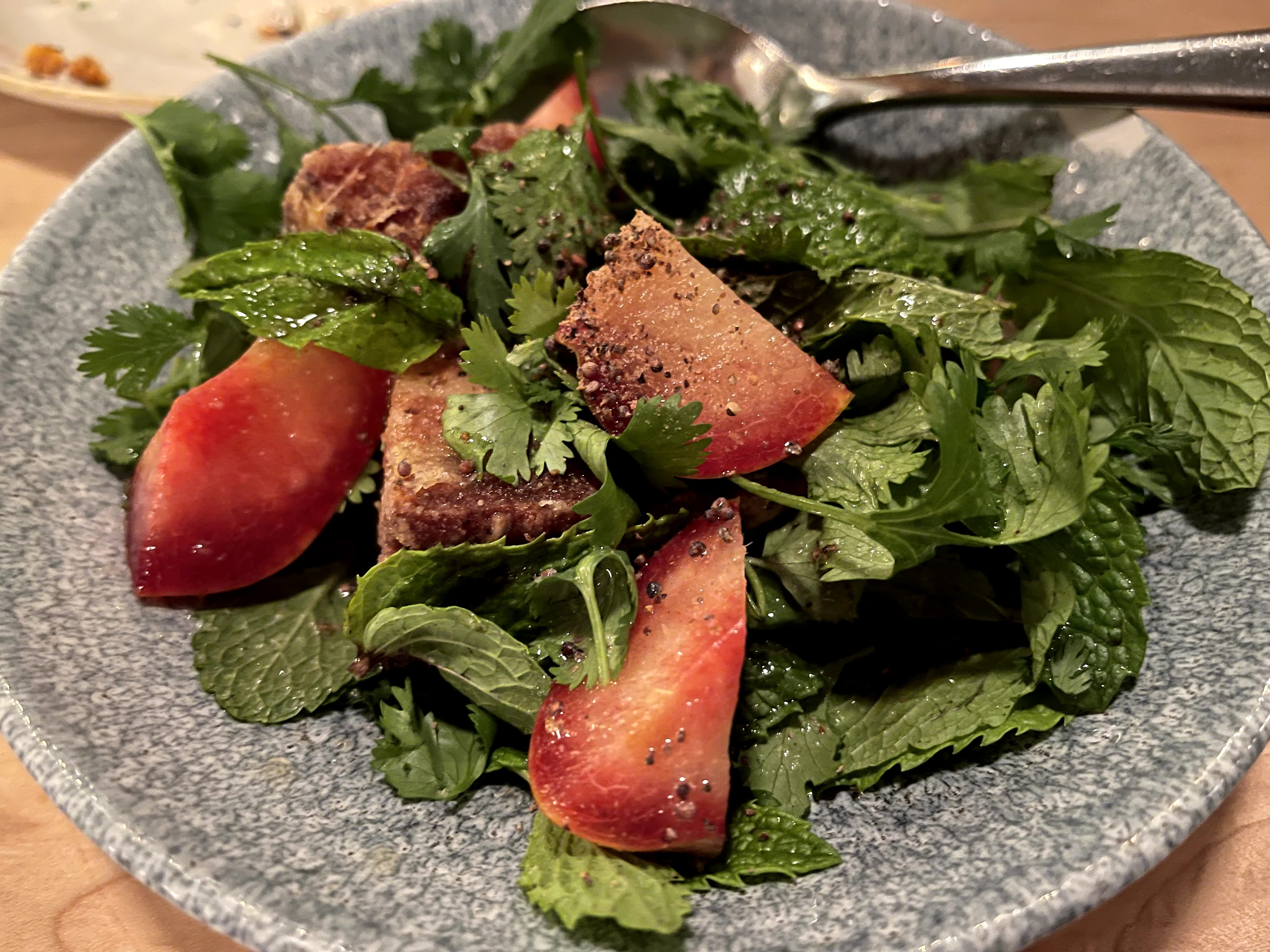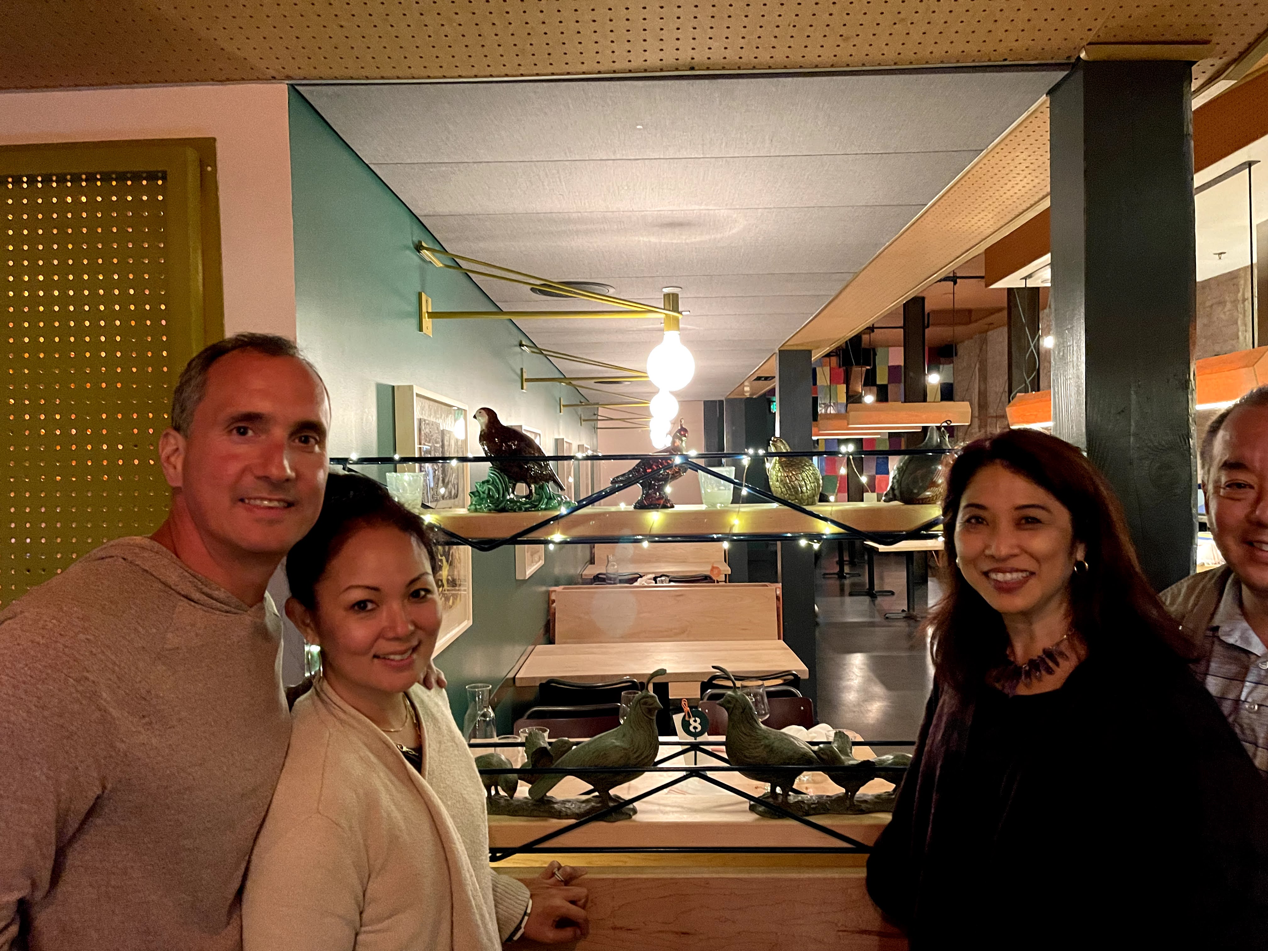 Dinner that evening was with Marla and Naone at State Bird Provisions at 9:30 p.m. This place is named for the official state bird of California the California valley quail known for their hardiness and adaptability. This restaurant has earned a Michelin star. Their menu changes frequently and on this evening the pork belly ‘salad’ was my absolute favorite. The pork belly was tender and just melted in my mouth. We also ate the Hog Island Sweetwater Oysters, Steamed Egg Tofu, Snap Peas & Beets, Garlic Fry Bread, CA State Bird with Provisions, Donabe of Brothy Beans, Corn Mochi, and Fried Oxtails & Tofu. We were the last ones to leave the restaurant