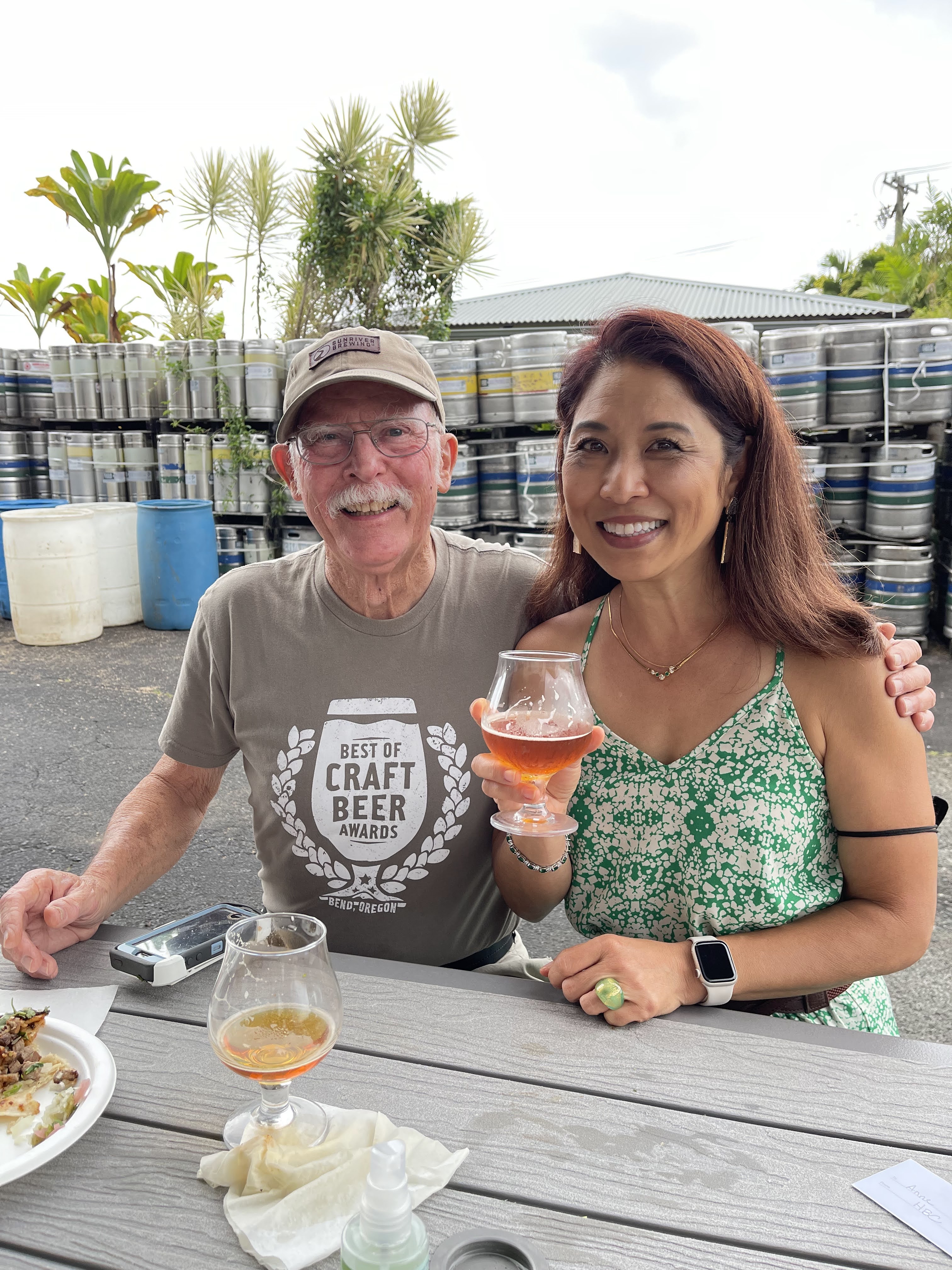 Before Hilo Brewing Company closed for the day at 6 p.m., I went in to get a glass of the Imperial IPA that is not available as part of the sampler and I happened to see Dr. Hillier, my Hilo High School English teacher and cross-country coach. It was so nice to chat with him. I found out that he is a certified beer judge through the Beer Judge Certification Program (BJCP)! So–if Bob Hillier is there, the beer must be great! If you like beer, find time to visit Hilo Brewing Company. It is a casual place to quench your thirst and get some bites to eat. I want to visit on a day the pizza truck is there the next time I go! Mahalo Hilo Brewing Company for inviting me to stop by! Living Hilo Style.