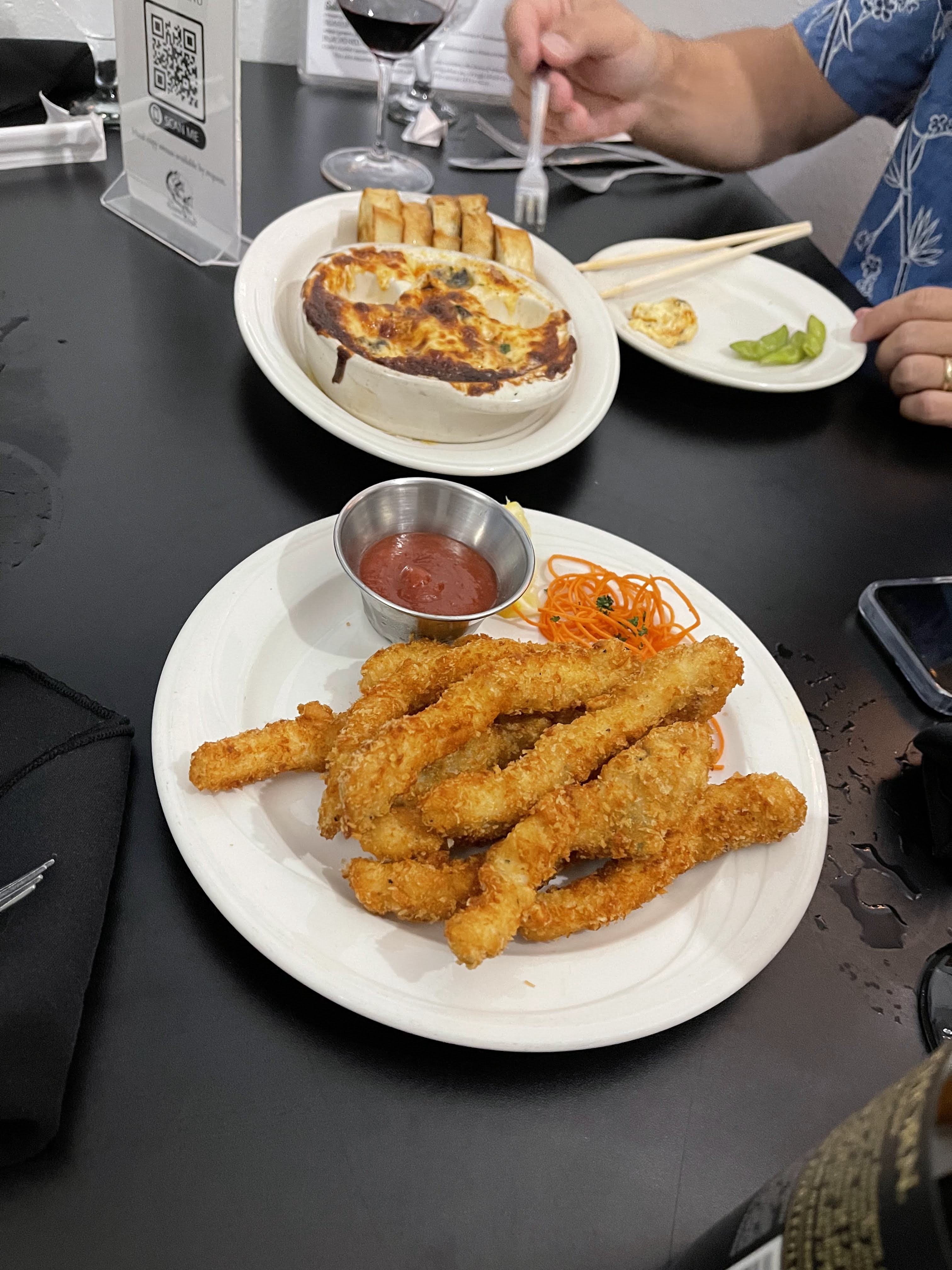 A committee I’m on suggested we have a dinner meeting at Seaside Restaurant. I can’t turn down a suggestion to meet over food at one of my favorite restaurants. We took care of business with a yummy sushi roll, shishito peppers, edamame, calamari, and escargot appetizers.