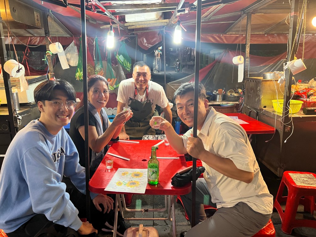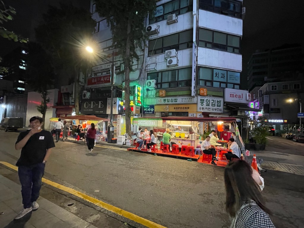 After a quick rest, we got going to our next tour of the day — a Seoul Night Private Tour including Korean BBQ, pojangmacha (tent bar), and the Seoul Fortress. We were picked up at 7 p.m. by Mr. Kim, an avid hiker. Check out Outdoors Korea if you would like to book directly with him. He helped us find yummy KBBQ with tender and delicious pork ribs and some soju. Next, we stopped at a pojangmacha and ate conch snail, Korean omelet and more soju and we got to learn some drinking etiquette on how to pour and accept a pour. After having some food and drinks, Mr. Kim took us to Puk Ak san and Naksan Park for amazing night views and returned to the hotel after midnight.
