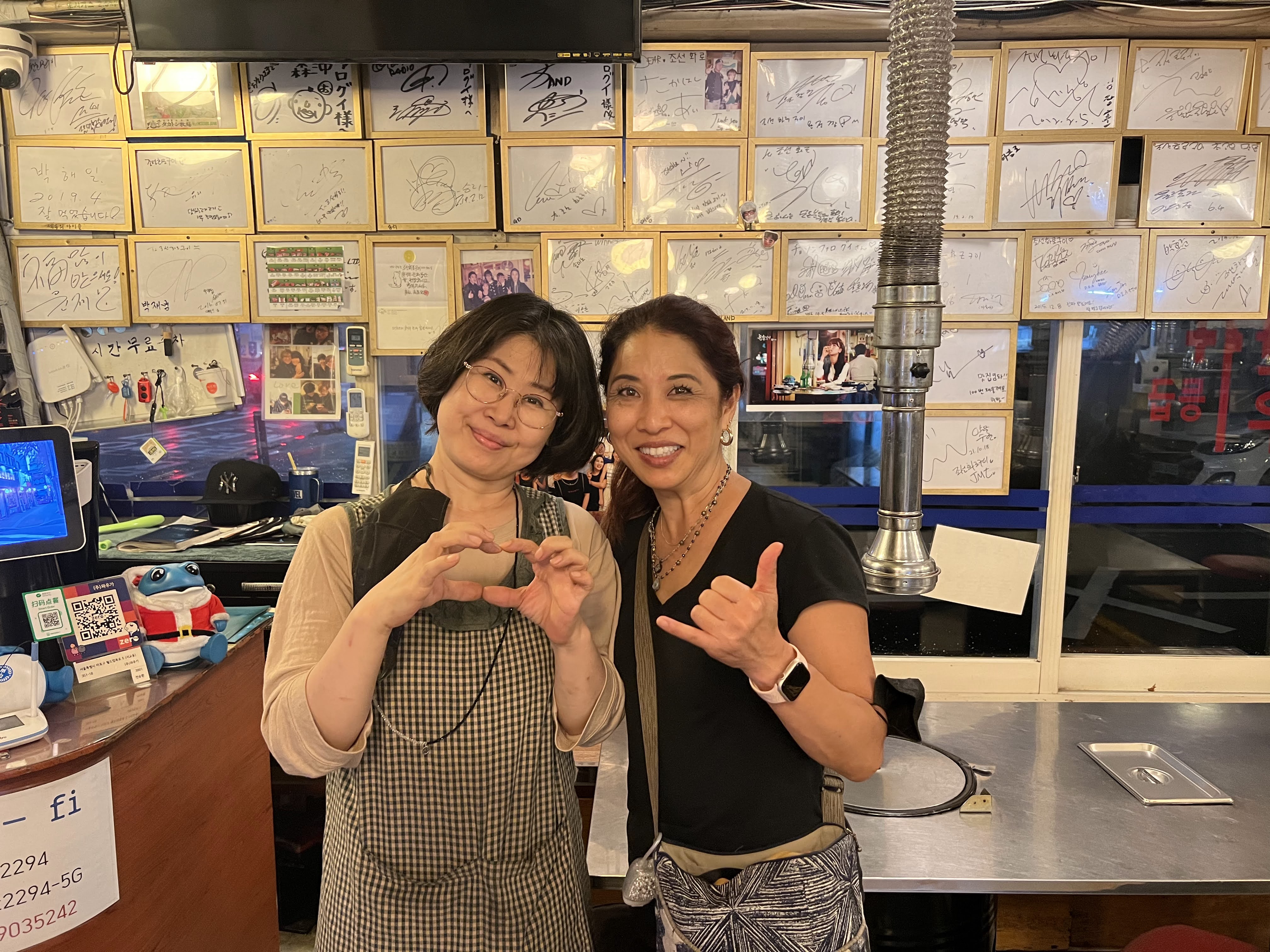Next we went to Busan Gamcheon Culture Village which is a neighborhood totally made for people who want to take pics to post on Instagram. So fun! We also made a quick stop at a little neighborhood where the stairs and walls were made from tombstones that the people found and used. There must be some good ghost stories to tell there! While waiting at the station for the subway train back to our stop, I saw a pine bud drink in a vending machine and tried it. Not bad! It is like a sweet tea with pine flavor. We got back to Seoul at around 9:40 p.m. and as expected, my traveling partner wanted to eat at the same restaurant as the day before so KBBQ it was. No complaints from me! I love KBBQ. Plus, by now, we were friends with the restaurant owner. This was the shortest day of walking on this trip. We only walked around 8 miles on this day. Living Hilo Style in Busan.