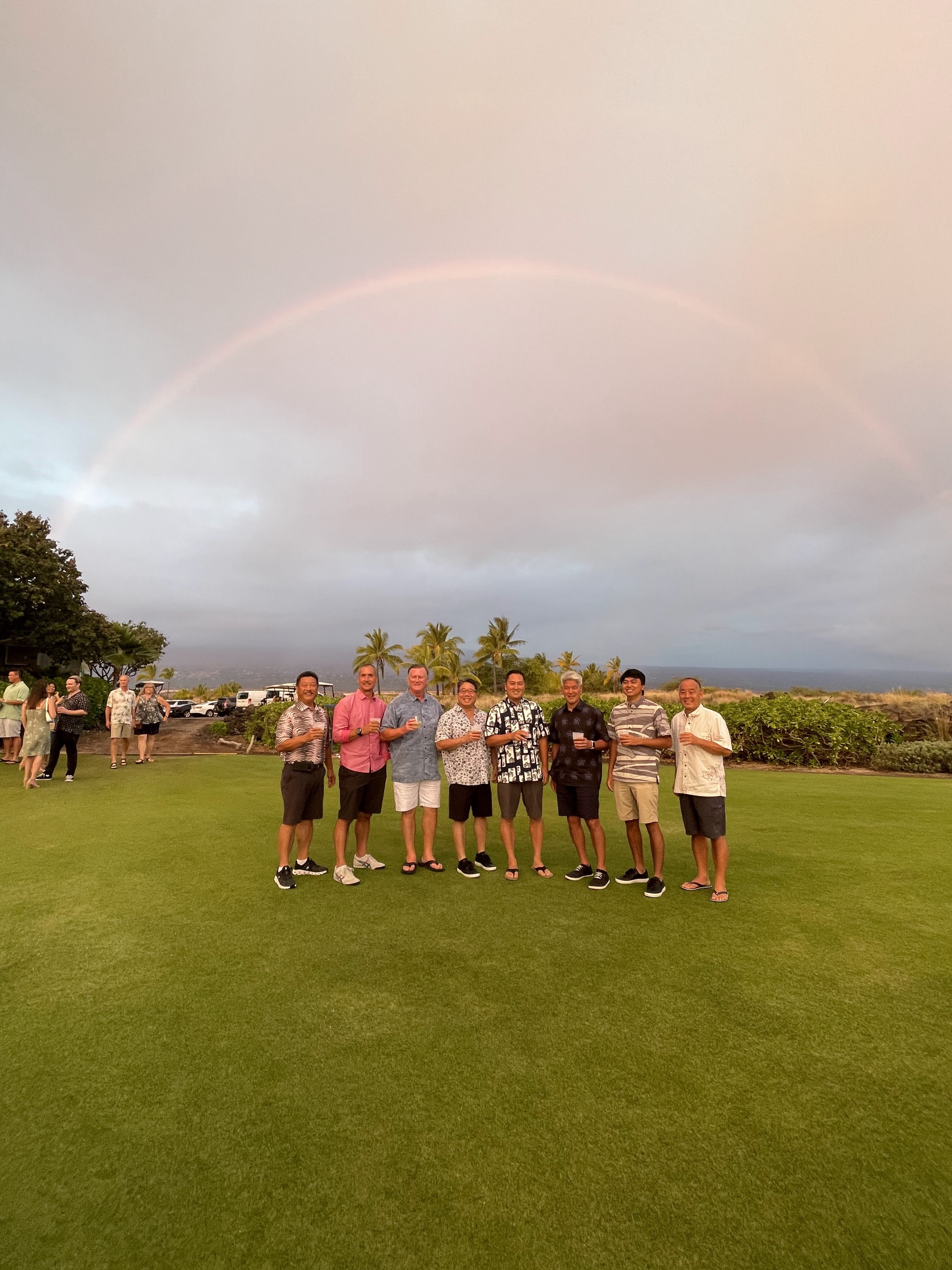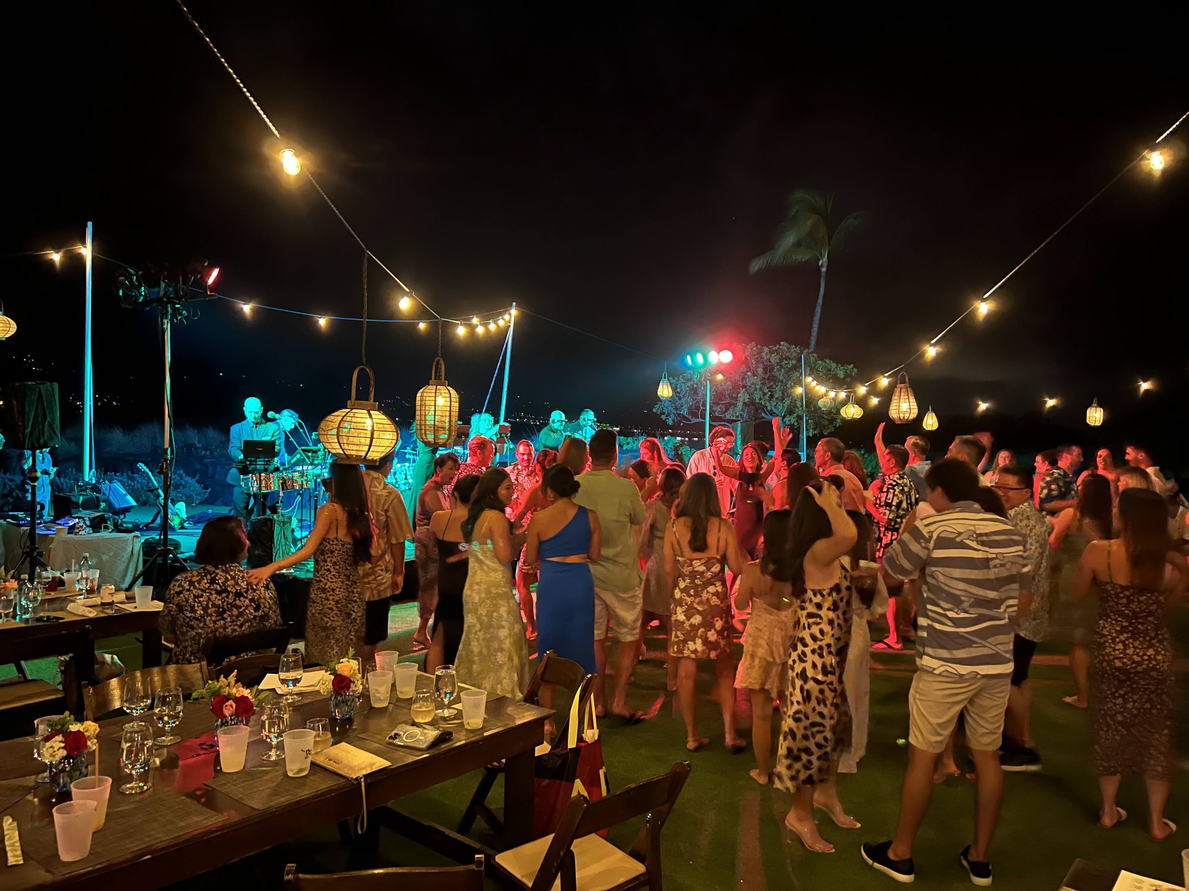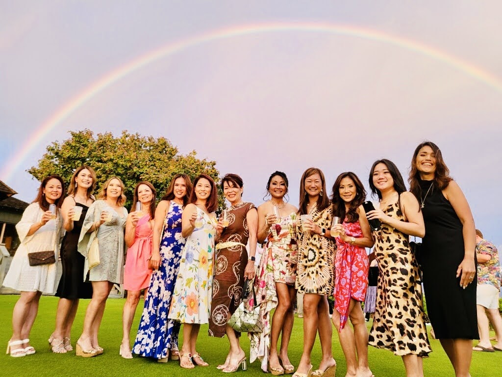 The rainbow continued to display its beauty at the event long enough for it to be in our photos at the party. The setting was magical–an unrepeatable ichigo-ichie moment. We enjoyed eating local foods including Any Kine wontons, sliders, Spam musubi, ice shave, and my favorite–a ramen bar! The music by Beyond Paradise helped us dance off all the food and drink all evening long.