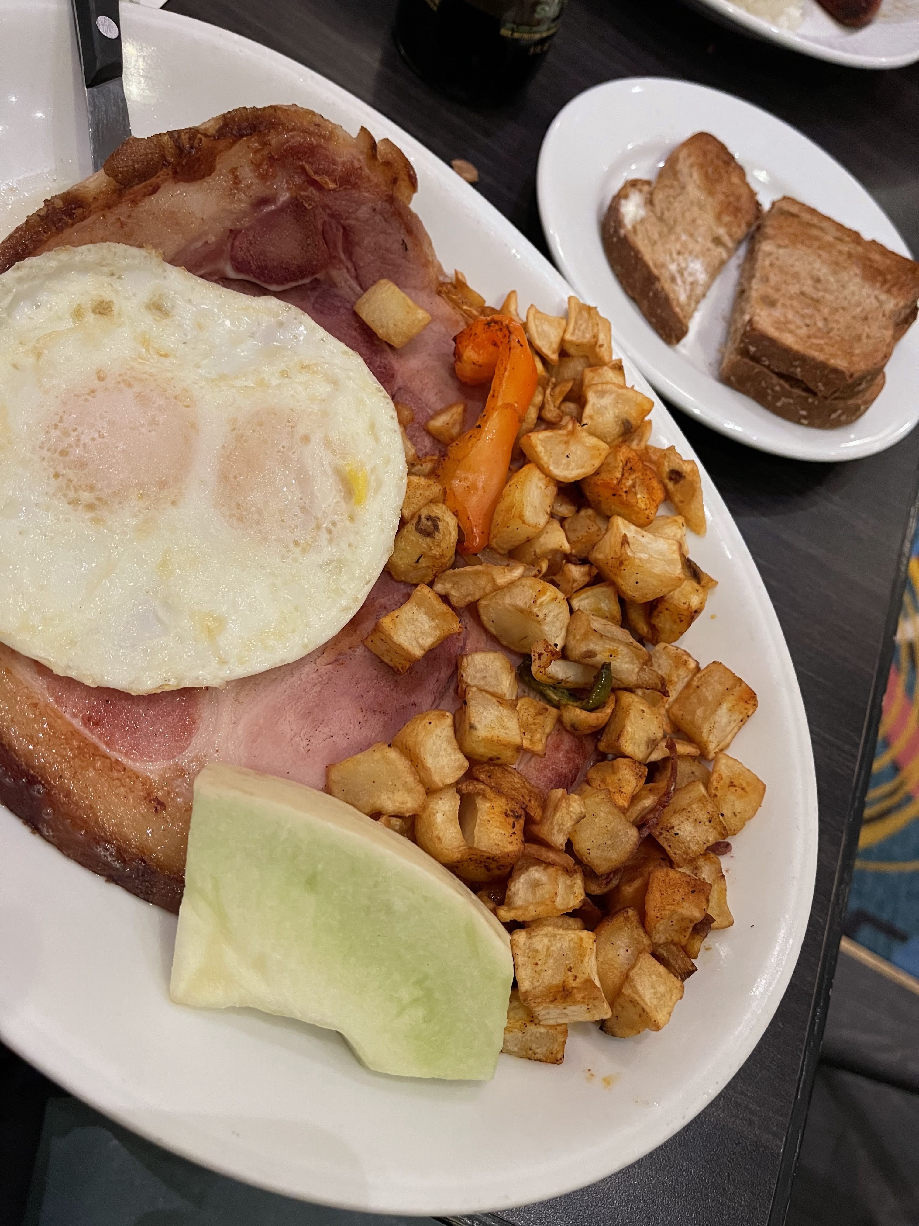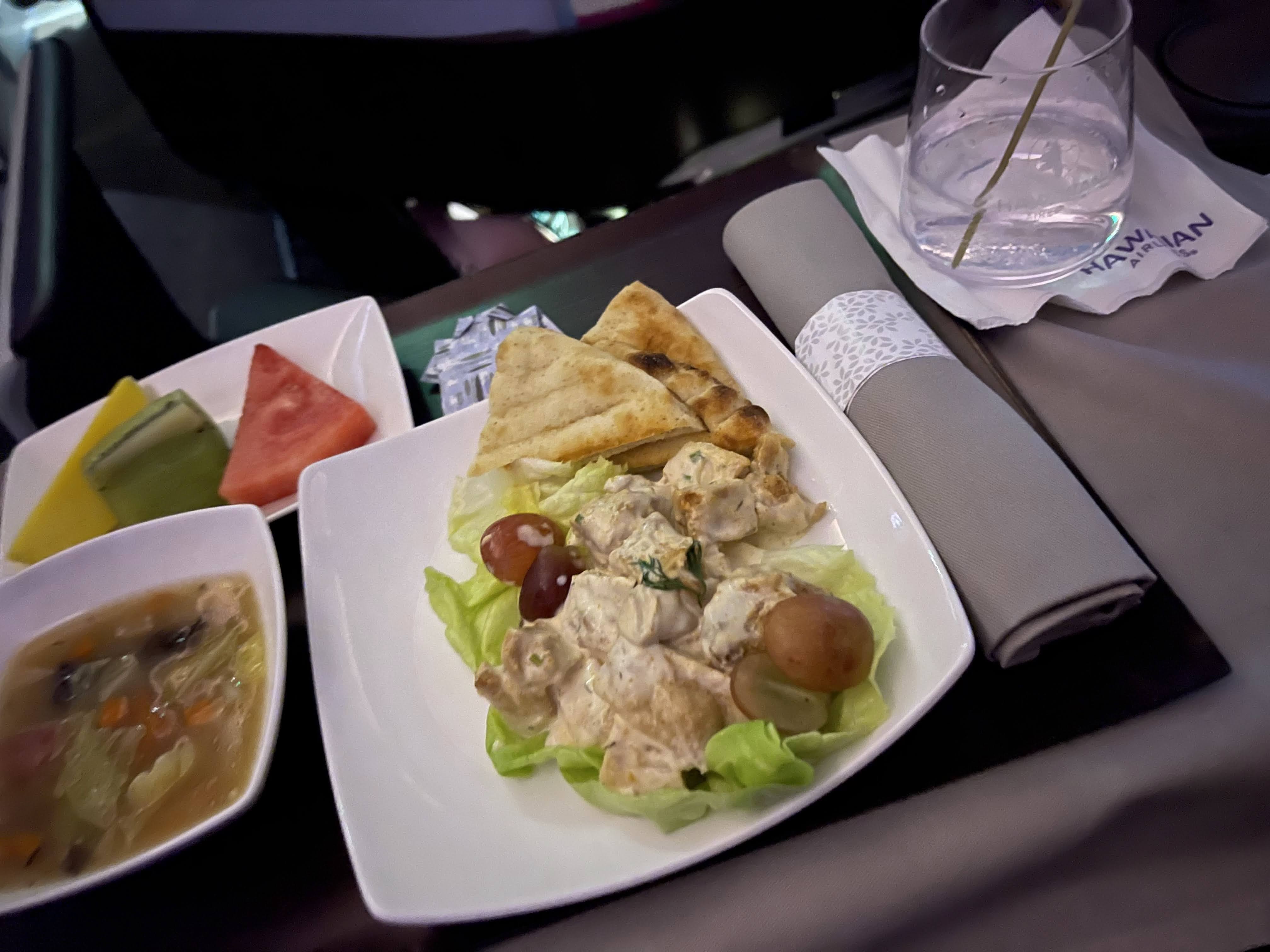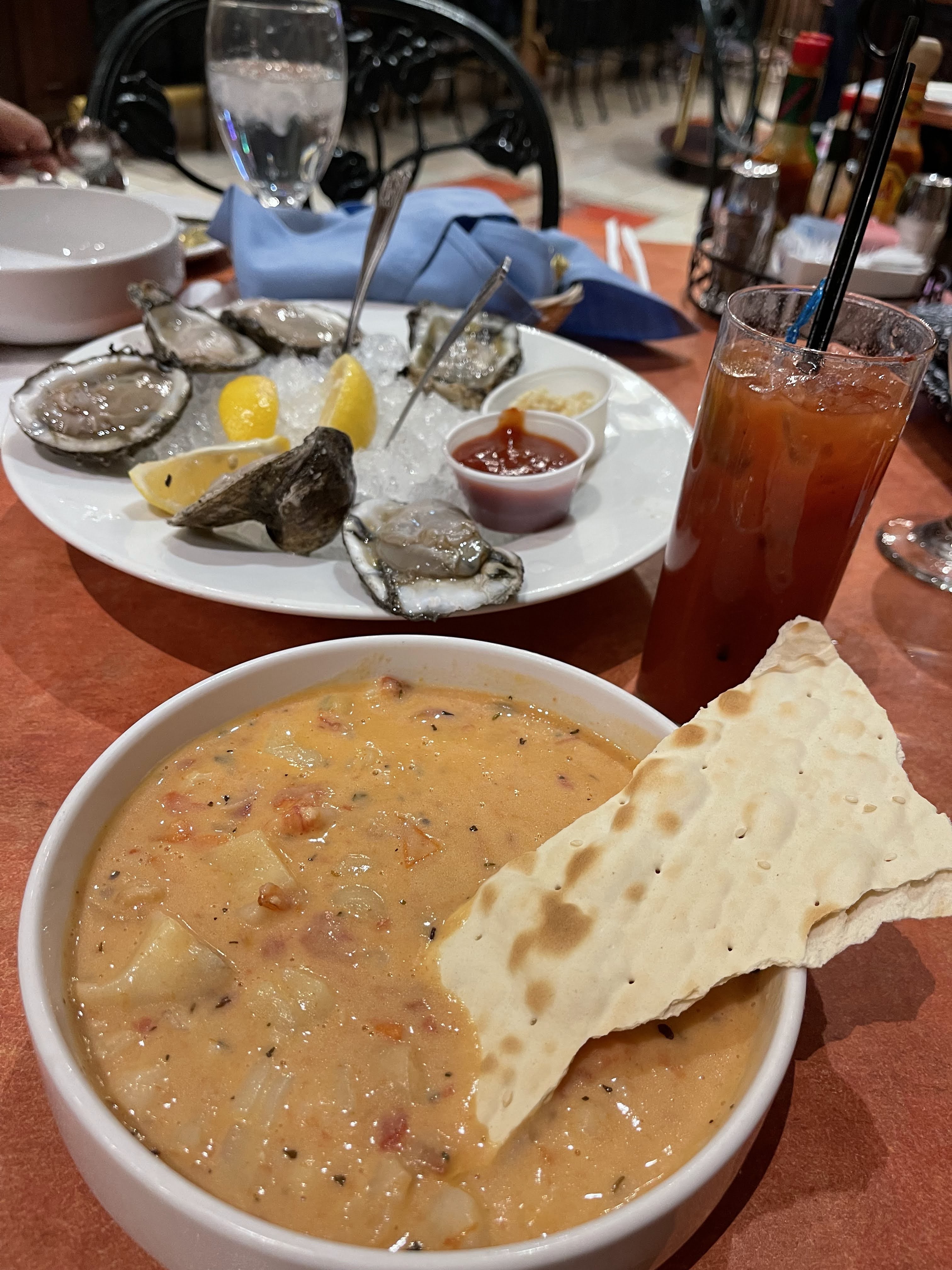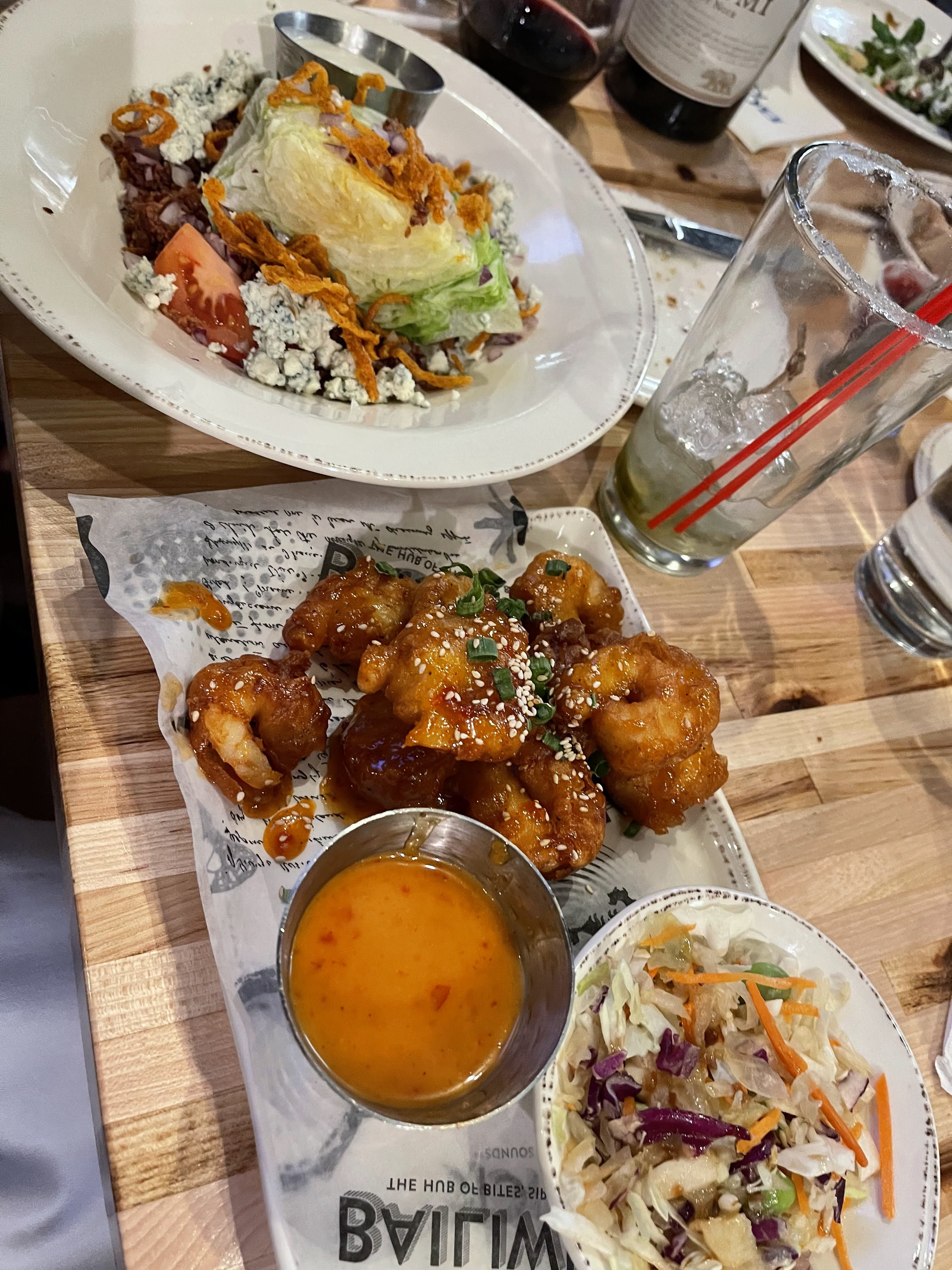 I left after work on Wednesday evening and took the redeye on Hawaiian Airlines and arrived in Nevada on Thanksgiving morning. To prepare for the flight and the relaxing weekend, I downloaded a few books on my Kindle and have a few shows on my device. I used some Hawaiian miles and upgraded my seat so I could stretch out on this overnight flight. A few friends were on this flight so I was able to catch a ride with them to the Orleans Hotel and Casino where my husband was staying. After getting in, I had a ham and eggs breakfast at the hotel at the Copper Whisk. The ham steak was bigger than my head! After that overnight flight and a big breakfast, I took a wonderful nap. After getting up in the afternoon, I unpacked, got some exercise in at the gym, and then finished watching Thirteen Lives which I started on the plane but didn’t get to finish. It was time for Thanksgiving dinner at Bailiwick at the hotel. I ordered a shrimp “tempura” and a wedge salad for my dinner.