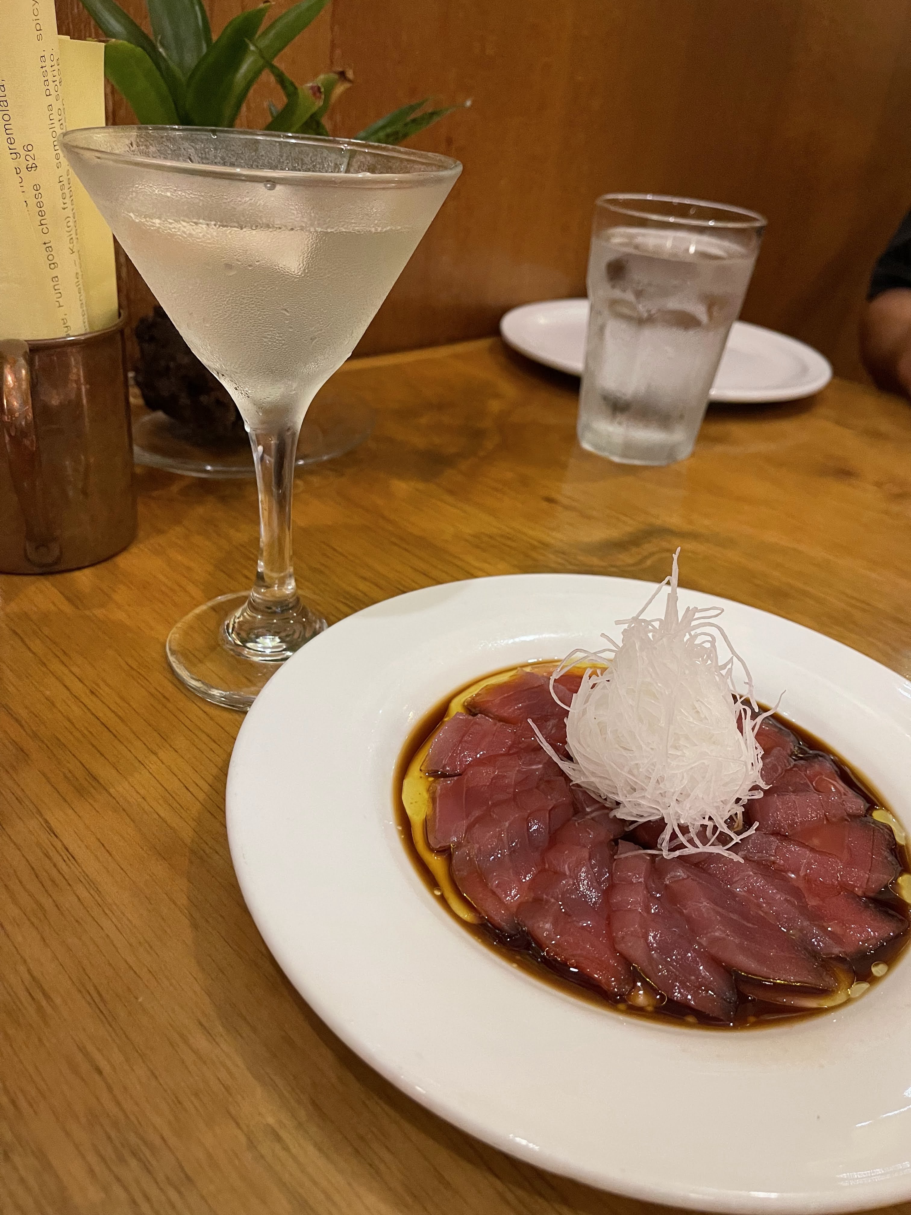 Before heading down, I looked at the menu on Facebook, and today, I was excited to see a Horseradish Martini, a cocktail with horseradish-infused vodka and olive juice. It sounds like something I’d love. It is an umami drink with a kick!