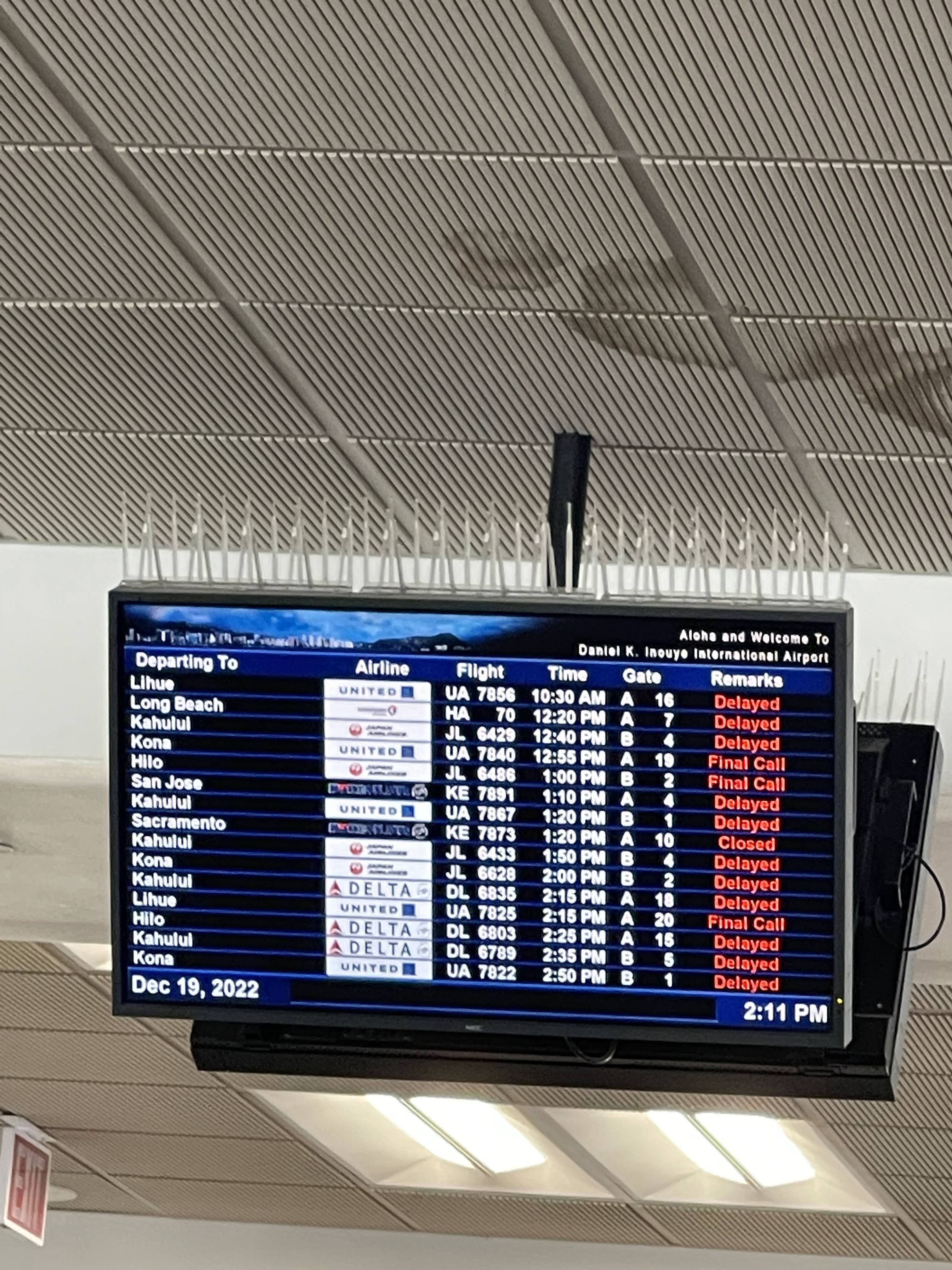 On our last day in Seoul, we enjoyed the breakfast buffet at the hotel. I had abalone porridge, dim sum, and bulgogi from the massive buffet selection. After breakfast, we walked to Insadong to pick up some gifts. After getting back, I took the subway to get to Seoul Station for my Lotte Mart visit to get some kochugaru, kochujang, and some fun Korean almonds before getting back and packing for our flight home to Hawaii. We paid to have a 5 p.m. late checkout so that we can rest and refresh before heading to the airport. I got a call from the baggage service that my bag is on its way to me. I would rather have had it fly back home but that wasn’t an option so I received my bag and then lugged it right back to the airport to check it in for its flight home. The ride to the airport was over an hour since there was rush hour traffic on the road. It’s a good thing I had allowance for three bags since I had to check in my original lost suitcase, the new suitcase I bought, and the small overnighter suitcase with my coat that I didn’t want to take on the plane. The security line was pretty long (almost an hour wait) and I had time to be entertained by the signs telling me that kimchi and kochujang should be in checked luggage. Once we were in the terminal, our upgraded seats got us access to the Korean Airlines lounge where we enjoyed some snacks and drinks before boarding the plane and settling in for the just over seven hour flight home. I slept for a solid 5-6 hours in my lay flat seat. We had a little less than a two hour layover at HNL but as it turns out, our flight was delayed for over three hours so we spent a lot of time at HNL. But three hours isn’t bad compared to some other stories I’ve been hearing. I’m glad I made it home. Along with all my bags. Living Hilo Style in Seoul.