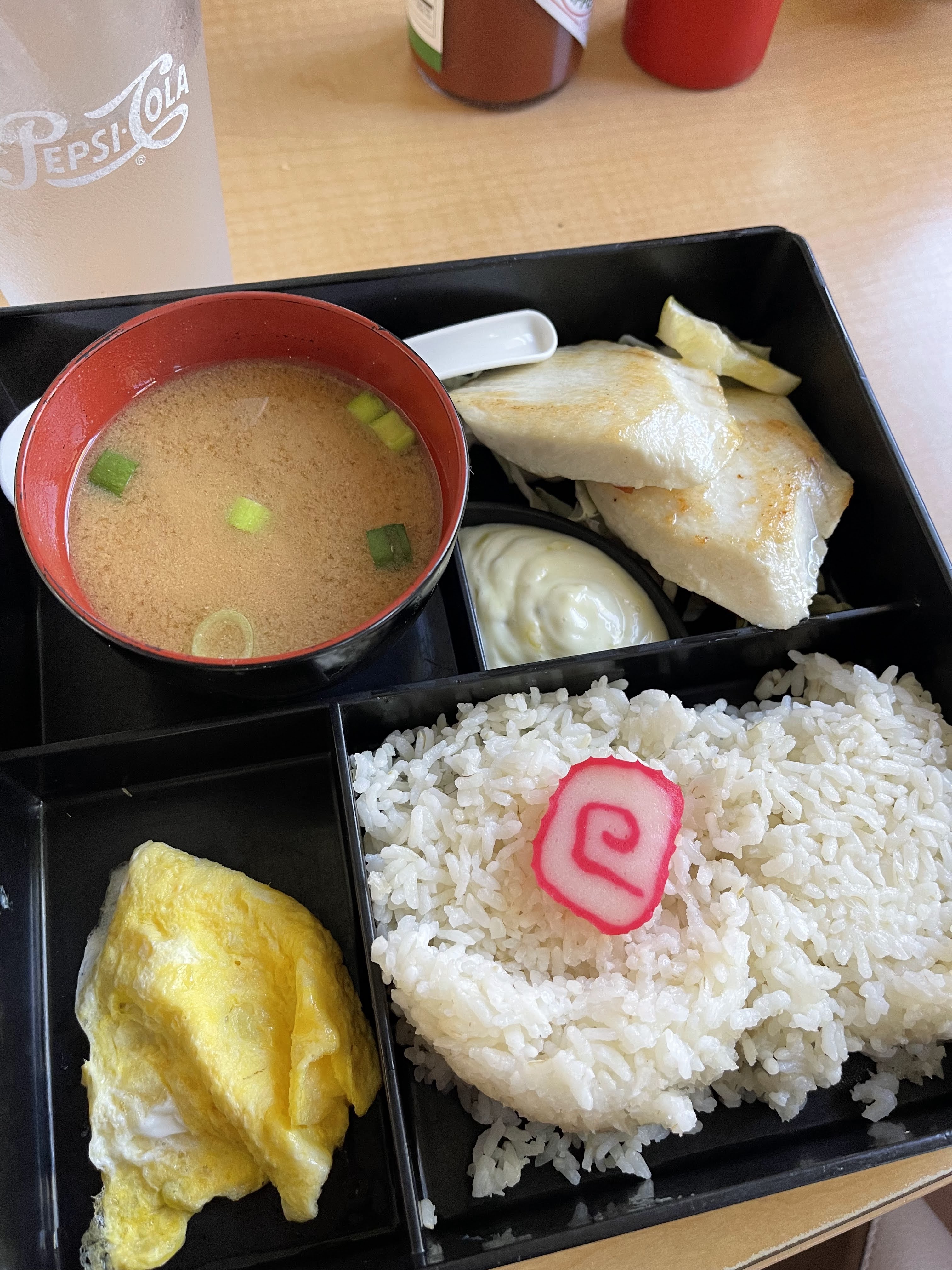 I had a breakfast meeting and we decided to go to Kuhio Grille on Pauahi Street. What do you get when you go to Kuhio Grille? I have been overindulging lately so I decided to lean toward the healthy side and I ordered the Breakfast #3 which is kind of a Japanese breakfast. It included rice, miso soup, grilled fish, and an egg. If the fish were a saba or a salmon, I think the breakfast would have been great but the white fish they served was really tough and hard to break apart with my fork. I actually kind of needed a knife to cut it. My table mates had a veggie omelet, a Kuhio Grille omelet (with gravy on the side), and taro corned beef hash with fried rice.