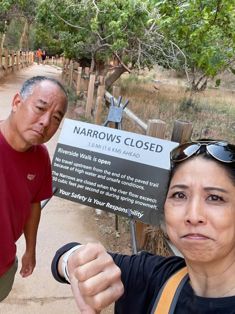The drive back to Las Vegas was smooth and easy and our first stop was at Trader Joe’s where I picked up Aaron’s favorite patio chips available in summer and some other new summer snacks. We also picked up more cookie butter that my son still loves as well as cheese, truffle chips, nuts, and sauces. By that time, we were ready for lunch and was open to some KBBQ and my husband suggested we go to 888 Korean BBQ so I pulled up the GPS instructions. As we drove there, we passed a restaurant called 8 Ounce and he realized that was the place he intended to take us to so we pulled into that parking lot but found that they were closed for lunch and so we ended up eating at 888. I thought it was not bad for an AYCE. We enjoyed lots of brisket, pork belly, cold soba, and kimchi. After lunch, we checked in to Orleans, droppped off our bags, and went to the for our last excursion of the day—a quick stop at the outlet shopping mall where I found sneakers to give me motivation to exercise more. This trip was a wonderful family getaway. Living Hilo Style at Zion National Park.