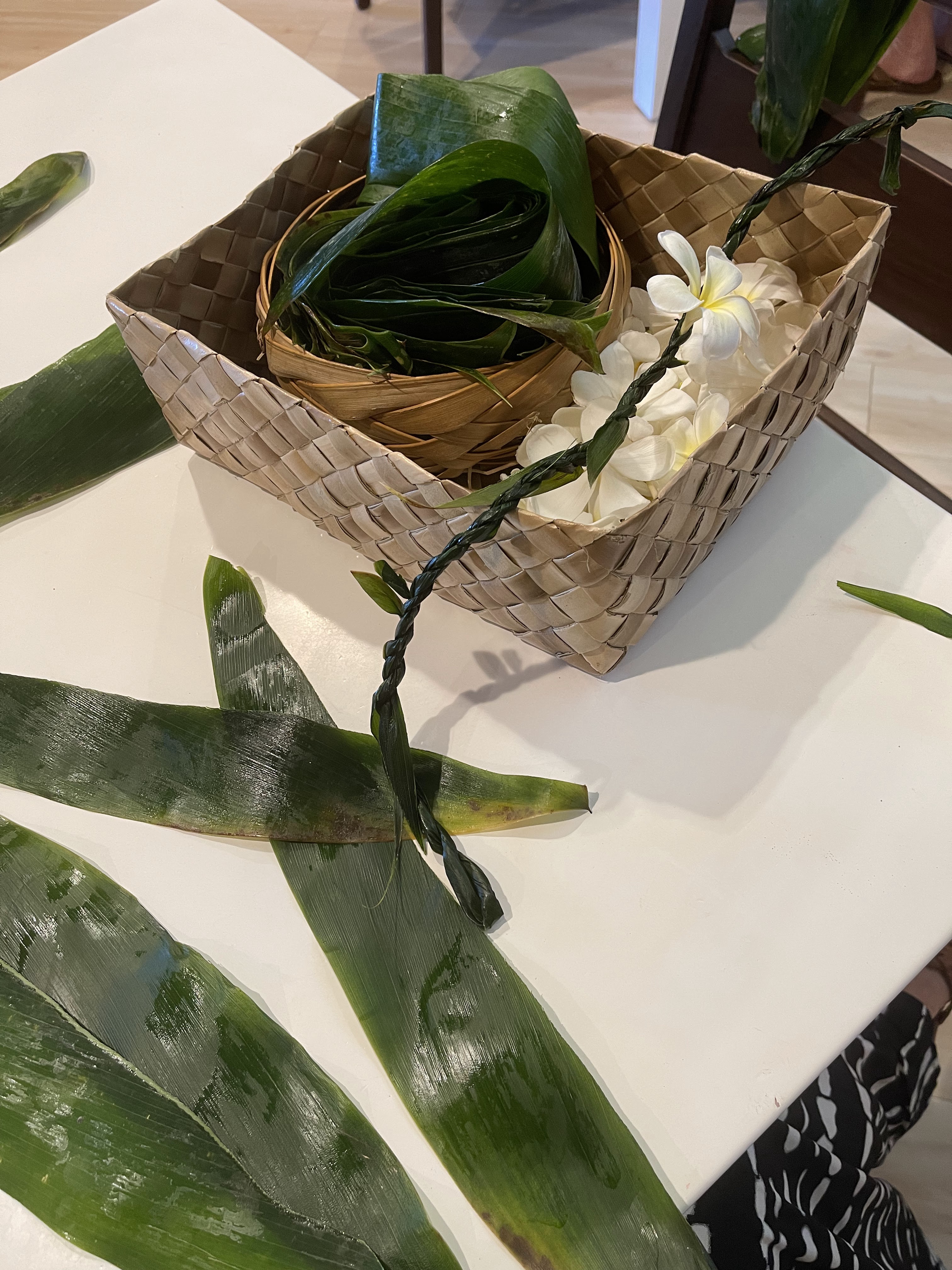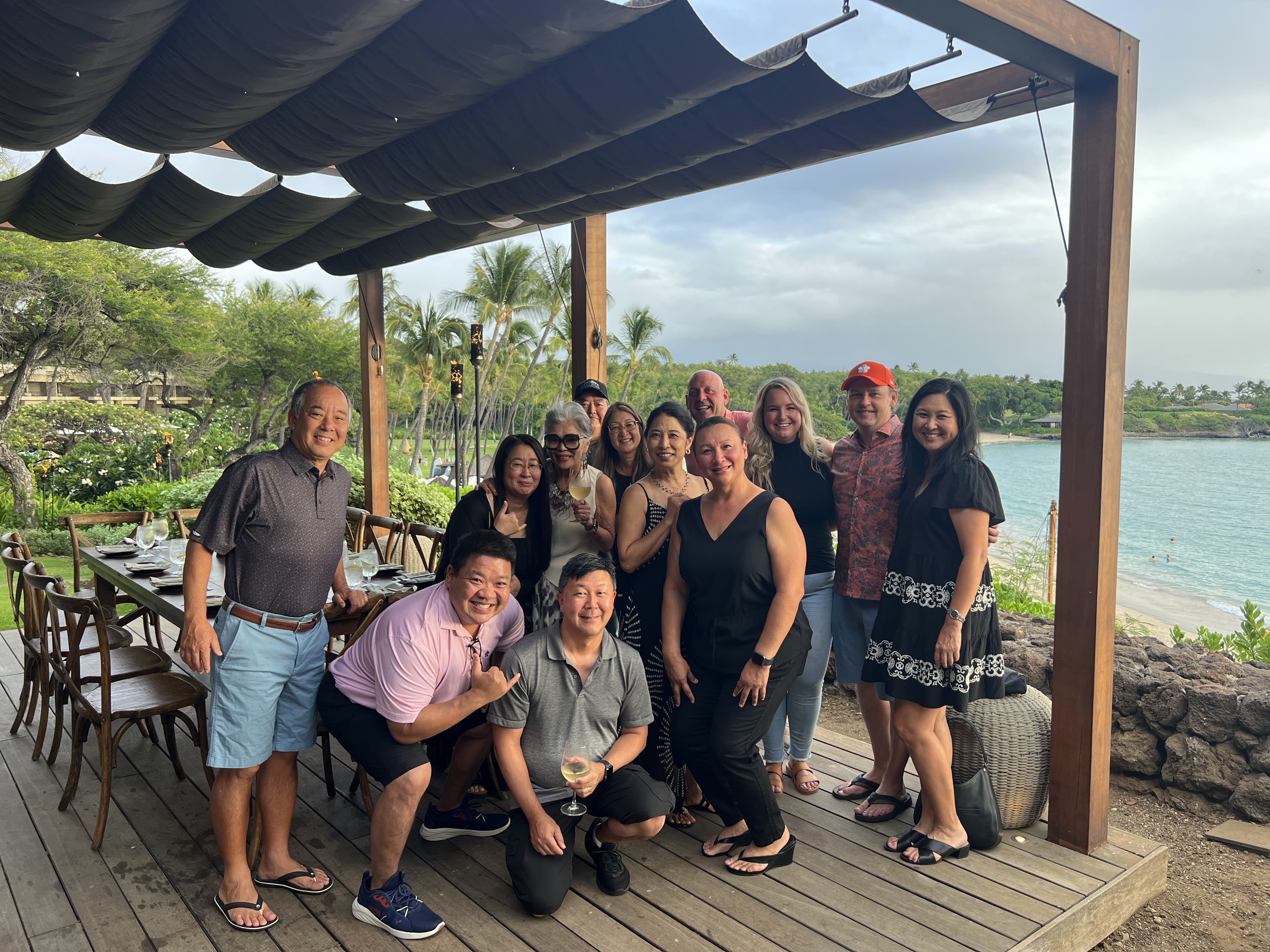 I thought I was going to wake up early and go walking but I relaxed and then participated in the ti leaf lei-making class at the hotel before heading to the beach to chat with friends and do crossword puzzles and get some lunch while some others in our group went golfing. We all met up for dinner where we got another beautiful sunset view with our group of 18 people at the Vista Point next to the Copper Bar. We shared plates of sushi, sashimi, flatbreads, and ribs as we celebrated our friendship. We again extended our party in our suite with more wine and games and finally, us doing our best to cheer on the United States Women’s National Soccer Team at almost 2 a.m.