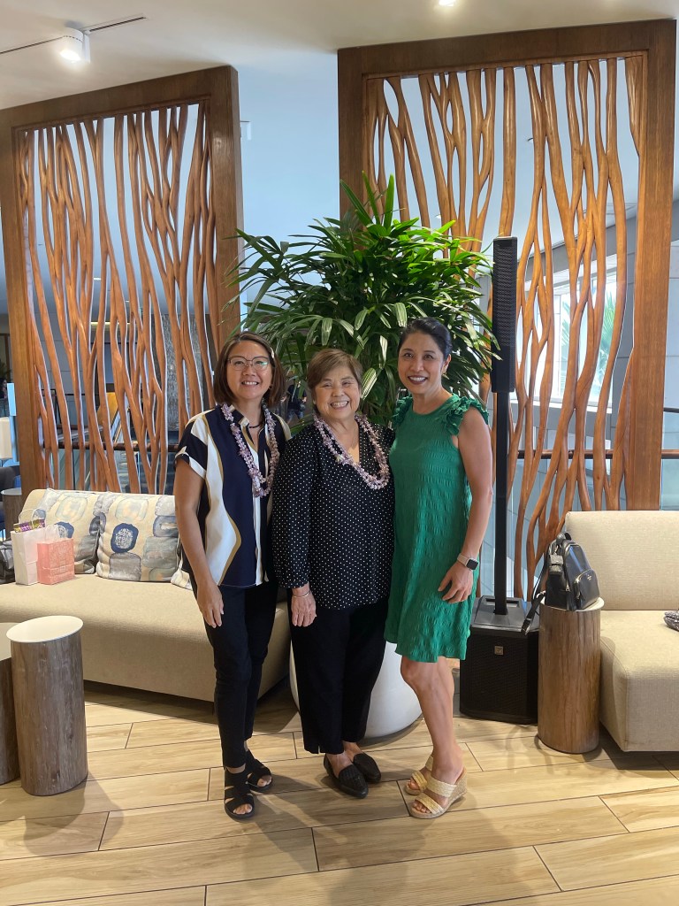 Before flying to Honolulu, I got up early and got my walk done before I flew on Hawaiian Airlines on a Sunday morning. Travel was smooth. My Hawaiian Air flight was on time and even arrived 10 minutes early. I met Cheryl at baggage claim and we headed to Budget to pick up our car. There was no line and we quickly got our car. One hiccup was that Budget gave us a car with no gas! The FILL GAS light was on. Aaron dropped us off at the Kalihi HMart for snacks and coffee for her son while my husband got some gas. We got to the Waikiki Prince Hotel and met up with Kay for our 11:45 a.m. lunch reservation at 100 Sails where we had a wonderful time catching up while indulging on prime rib, poke, sashimi, and more! I was happy to share some Big Island omiyage of Hilo Lunch Shop warabi salad, KTA sakuraboshi and Atebara’s taro chips and furikake mac nuts.