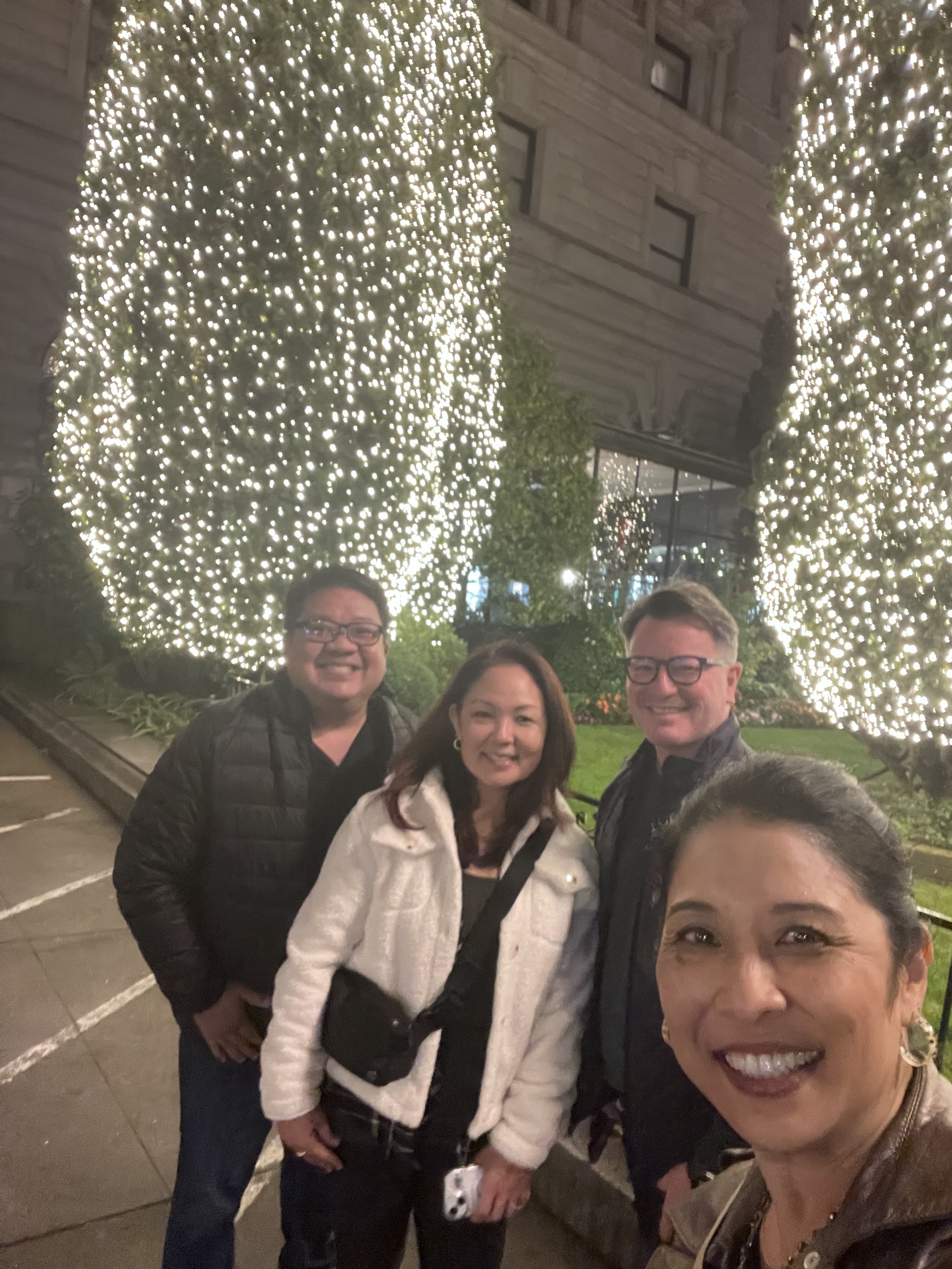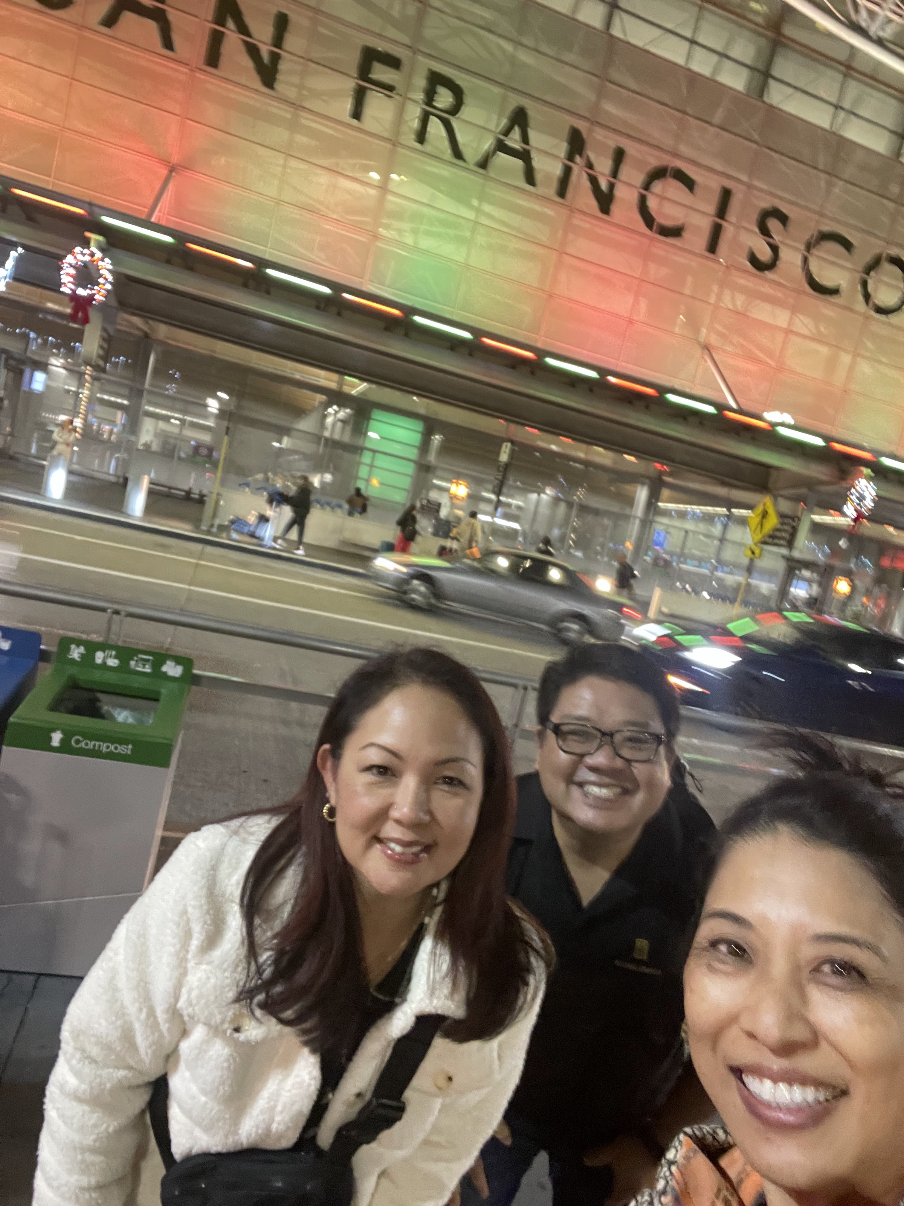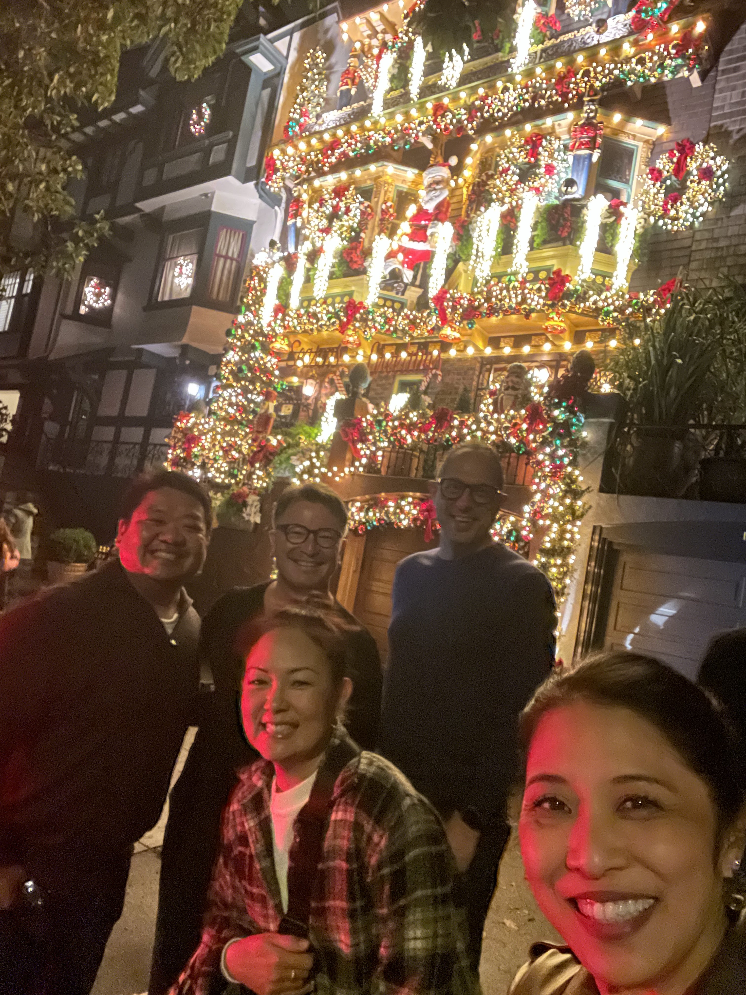 Marla smartly shut the blackout curtains so that I would wake up with the sun and start Ryan on the Anne and Marla SF tour too early. Our first stop was to the Ferry Building Farmer’s Market. I had intended for us to walk the mile there but it was rainy so we ended up hiring an Uber. After exploring the market, we stopped Hog Island Oyster Company for some oysters, champagne, and chowder. After lunch, we explored the shops inside the building before visiting my pal Moises at Tsar Nicolai for caviar and more champagne. We also purchased more caviar and accouterments to take to Deaner’s home that evening. We also picked up some Alfajores shortbread, dulce de leche cookies from a local vendor for our dessert that evening. Since the weather cleared up, much to the chagrin of my travel mates, I suggested that we walk back to the hotel where on the way, I made a quick stop at Saks before stopping in at the Westin St. Francis to visit Russ at the Chateau Montelena tasting room. Next stop on this Saturday—Deaner’s house in a neighborhood that was beautifully decorated for the holidays. We enjoyed amazing pasta and homemade meatballs where Deaner’s hospitality was on full display. At close to midnight, we decided it would be fun to head to Zam Zam in Haight for a nightcap. Check out Zam Zam for some cool history. I wish I could ask the amazing mural to tell me the stories of what it had seen over all the years of being on display. Also—you won’t get a napkin unless you request one. You can find out why if you go there.