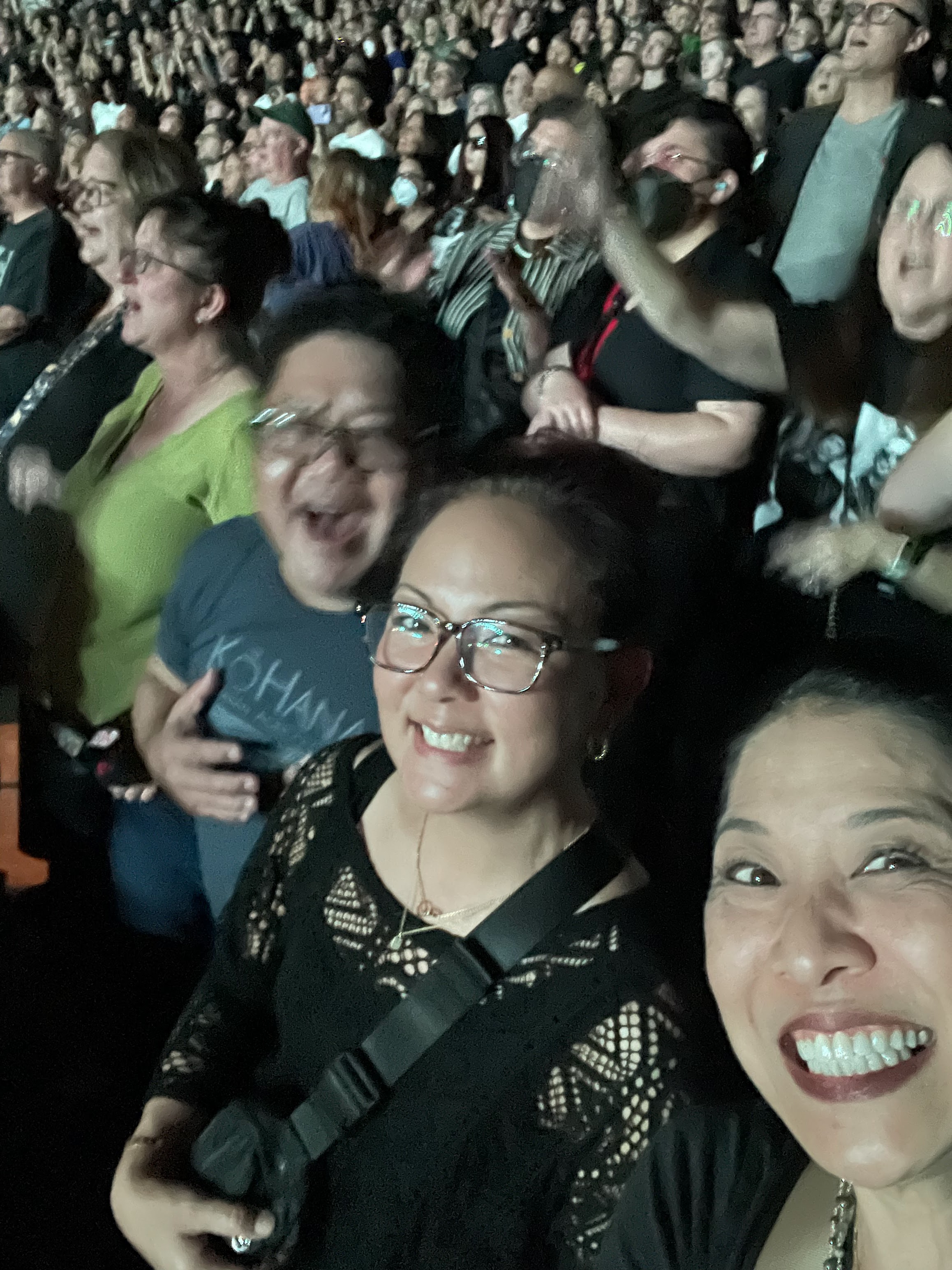 On Sunday, I got up and walked to the Trader Joe on Hyde Street to get some pantry essentials and non-essentials before starting our Sunday tour. After meeting up with Marla and Ryan, we strolled to Chinatown so we could get some dim sum at Hang Ah restaurant, purportedly the oldest dim sum restaurant in America. I loved looking at the 1940s and 1950s Miss Chinatown contestant posters on the walls. After dim sum, we walked to Vital Tea for tea tasting for fun and health and I ended up getting more of the Iron Goddess King tea that I hope will help me with antiaging, antioxidants, prevent diabetes, and burn fat. After a quick refresh back at the hote, we had some pre-concert drinks at the hotel bar and then walked to Union Square where we caught the Muni to the Chase Center. It was so easy to catch and very clean.