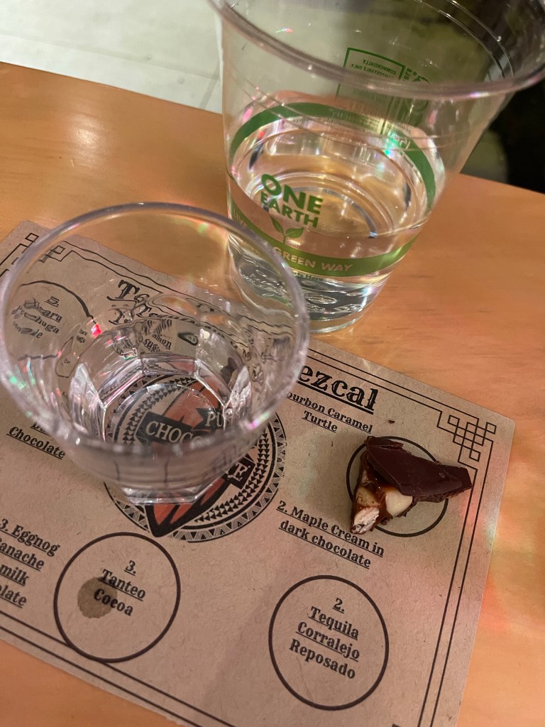After dinner, we headed to Puna Chocolate Company in downtown Hilo where we had tickets for their tequila & mezcal tasting each paired with a chocolate.