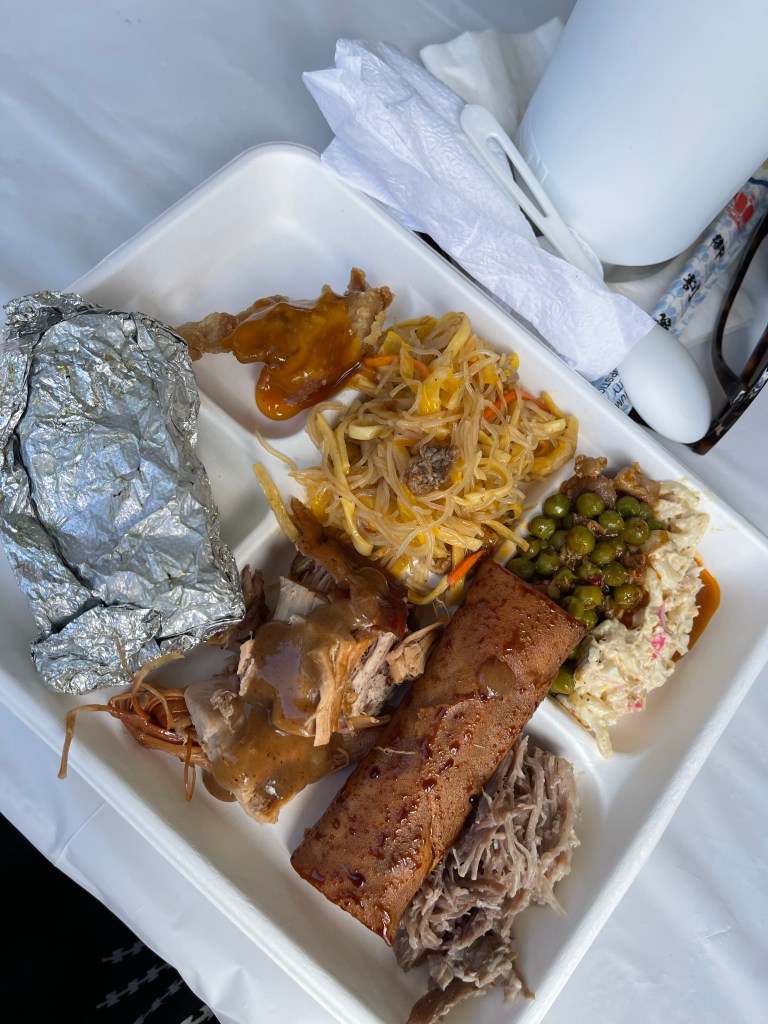 This party had the best mix of Filipino, Hawaiian, and local favorite foods. Everything from a suckling pig, laulau, pancit, pork and peas, to a fabulous pupu buffet with edamame, poke, and warabi salad! After all that indulgence, I indulged even more with crispy banana lumpia! After getting home from the party, I had a total kanak attack!