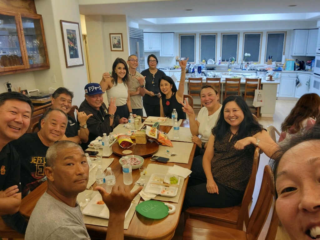 Our friends Kaoru from Kubota Sake in Niigata and Hide from Cherry Company had a visit to Hilo so we asked them to offer a private sake tasting for us to compare the different sake varieties they offer. Since the event was scheduled for a Friday, instead of asking everyone to potluck, we decided to cater food from Kimo & Melia’s Hawaiian Food. We ordered chicken long rice, kalua pig, lomi salmon, sweet potato salad, and laulau. Everyone brought lots of pupus and desserts too. We had everything from crispy wonton, cucumber kimchi, veggie sticks, sushi, chips and dips, and yummy desserts! I made a snack plate with freshly made veggie focaccia that my friend Jenny just gave me, Point Reyes togarashi cheese, baby carrots with some artichoke-jalapeno dip, and slices of pepperoni. By the way, if you want to order Jenny’s focaccia or any of the other delicious things that come out of her kitchen, follow her on Instagram at kaumana_mama.