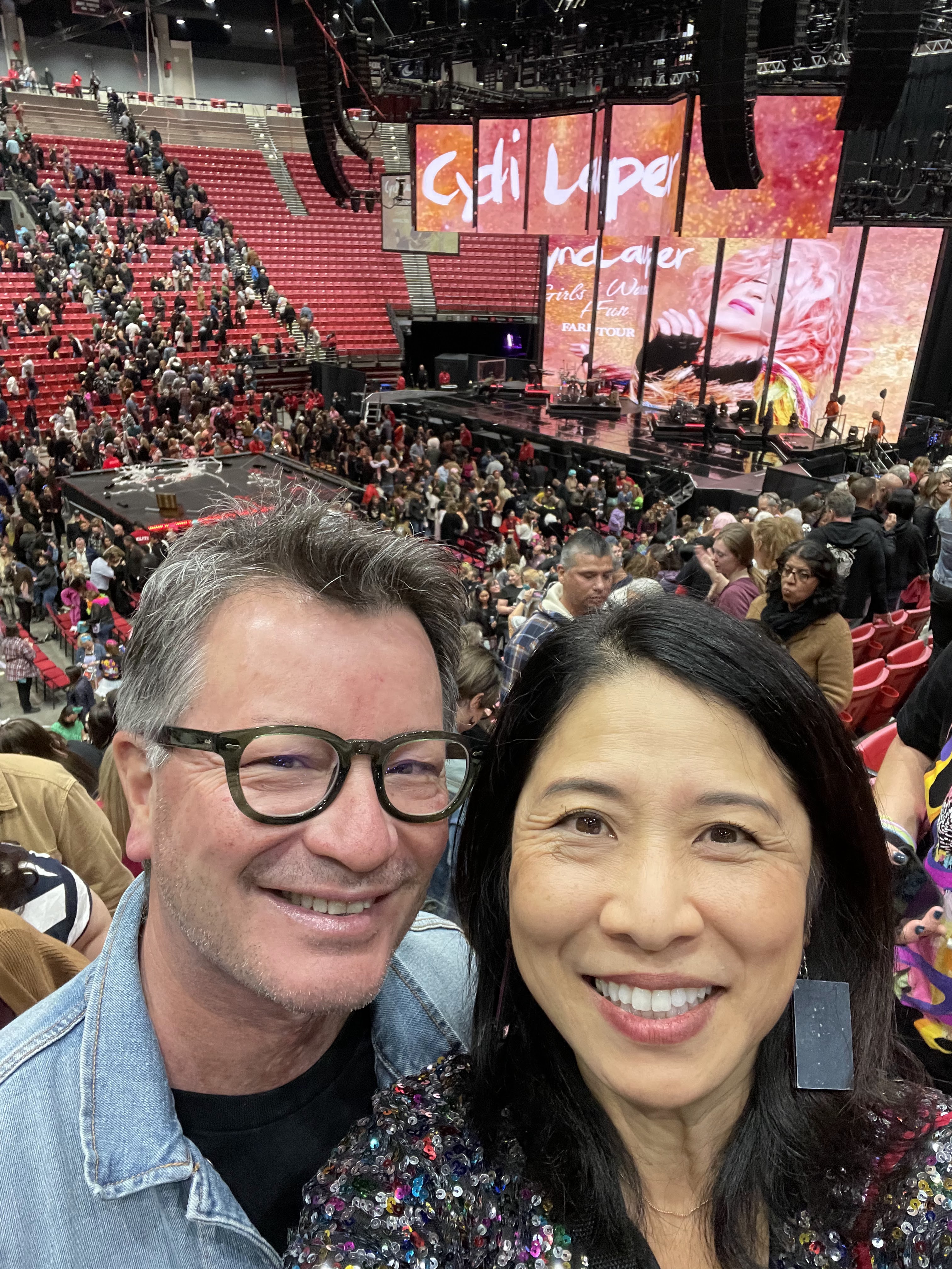 I love attending concerts. My most recent concert was at the Viejas Arena at San Diego State University. It was for Cyndi Lauper’s farewell tour. I also celebrated MY farewell (to work) tour with this Girls Just Want to Have Fun concert.