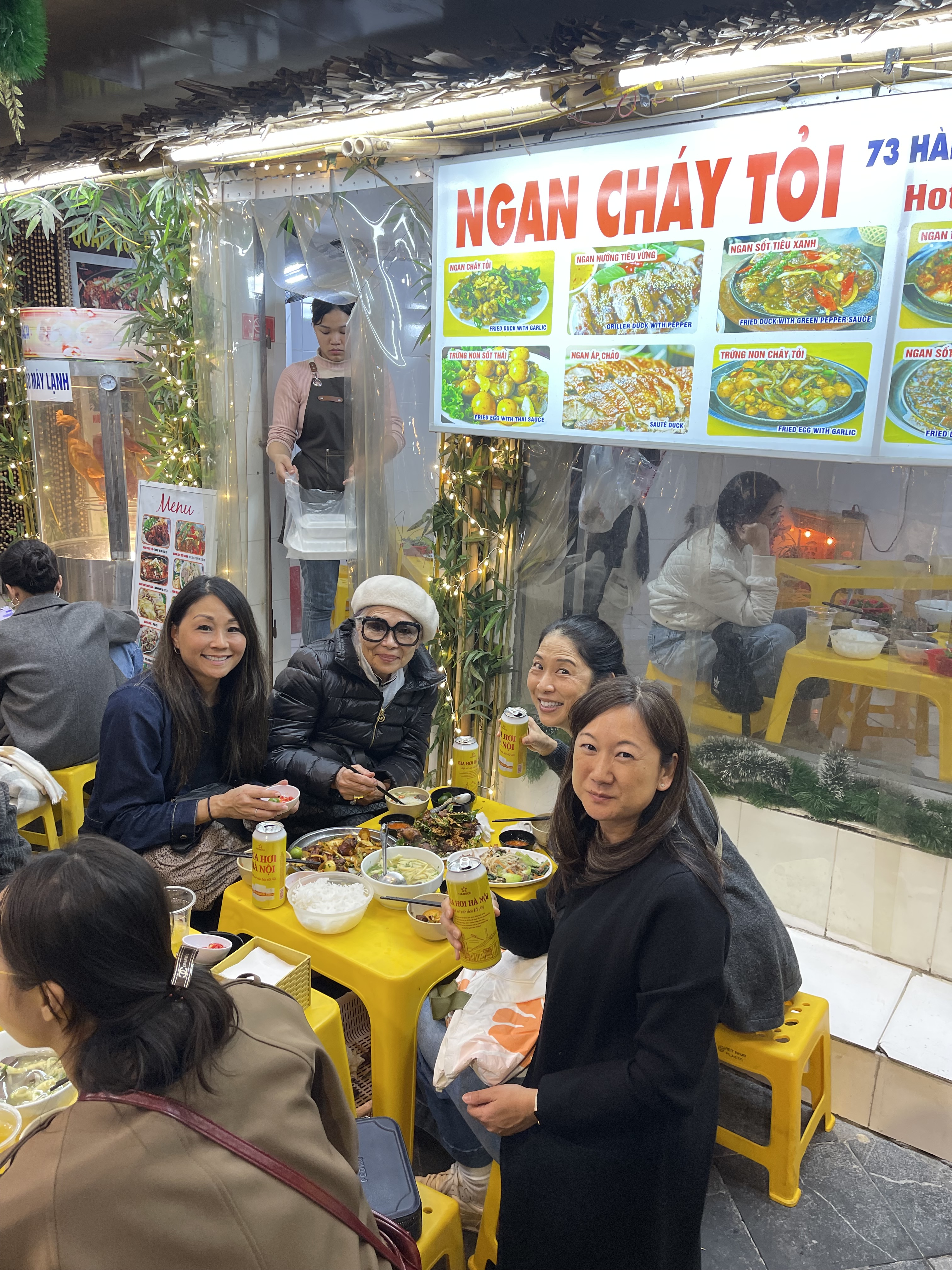 On our first full day in Hanoi, we started with an amazing international breakfast buffet. The breakfast was included with our stay and we got pho! In addition to Vietnamese food, the buffet included Japanese, Chinese, Korean, Indian, and continental foods. I could enjoy natto and kimchi! We met our guide who took us to a lacquer store. We found and bought fine lacquerware and art made in Lacquer Village in Vietnam. Our second stop was at a Vietnamese fine arts and products store. We bought embroidered silk, coffee, tea, and snacks. Our guide brought us to the Temple of Literature dedicated to Confucious. I loved this stop. We saw so many people visiting during the days leading up to the Lunar New Year. We stopped for lunch at Hương Liên where Obama and Bourdain had their famous meal. We ordered the same thing as they did, now known as the Combo Obama. I was expecting a cold bun cha salad but it turned out to be a warm and slightly sweet soup. As we enjoyed our meal, we were surrounded by photos of Obama and Bourdain on the walls of this eatery. After lunch, we stopped at Hoa Lo Prison that you may know as the Hanoi Hilton. I want to educate myself more on the history of Vietnam. It was interesting to hear our Vietnamese guide refer to the war as the American War. Lerning more history is another project/goal to add to my retirement list. I think I can combine this with reading more too. We stopped at Train Street again to check out the daytime vibe. The last sightseeing stop of the day was the the Ho Chi Minh mausoleum and the changing of the guards. We ended the day with a visit to Mido Spa. I got a 110 min facial for less than $50. After our relaxing spa time, we walked to Tam Vi, a one-Michelin star restaurant. The total price of this dinner for 4 people was $32. This included 4 beers and 4 bottled waters. So affordable. But — truthfully, I’d recommend getting food at an even cheaper, more authentic Vietnamese restaurant.