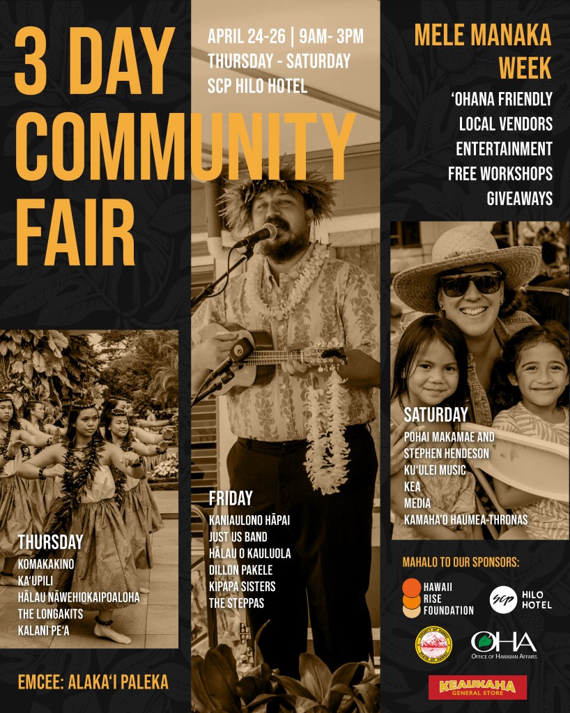 Hilo, Hawaiʻi – SCP Hilo Hotel and Hawaiʻi Rise Foundation, in partnership with the Office of Hawaiian Affairs, Atherton Family Foundation and Keaukaha General Store are proud to present this year’s Mele Manaka 2025 Community Fair—a FREE three-day event celebrating Hawaiian culture, music, and community.